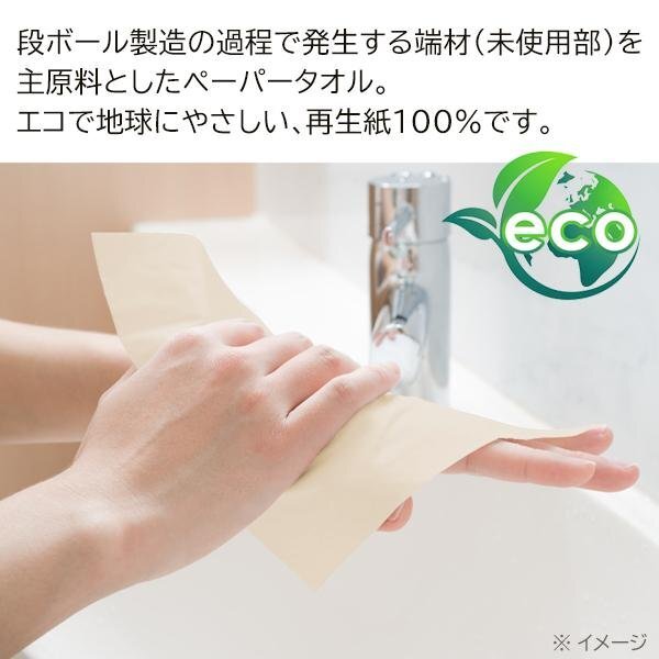 段ボール製造の過程で発生する端材(未使用部)を主原料としたペーパータオル。