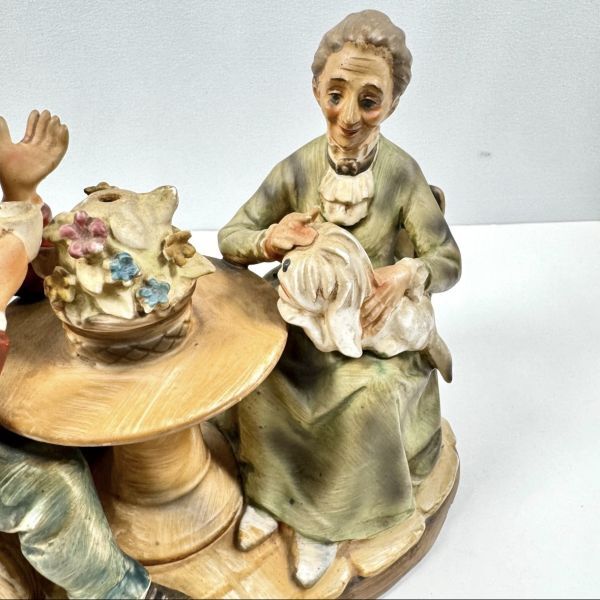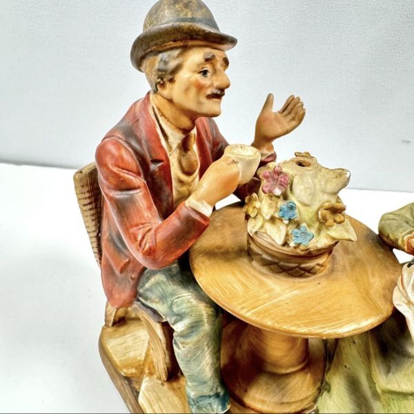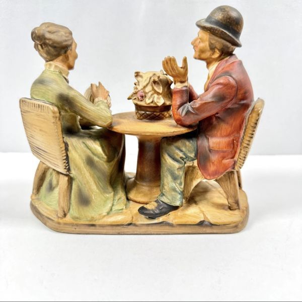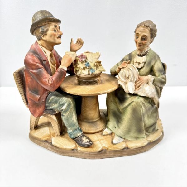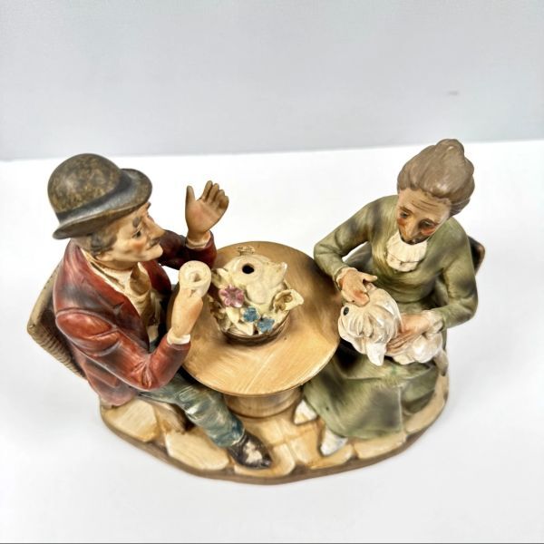 日本製ヴィンテージブランド「NORLEANS JAPAN(ノーリンズ)」の陶器フィギュリンです。 ティータイムを楽しむ老夫婦をモチーフにした温かみのあるデザインで、当時の職人による繊細な彩色と造形が魅力の一品です。