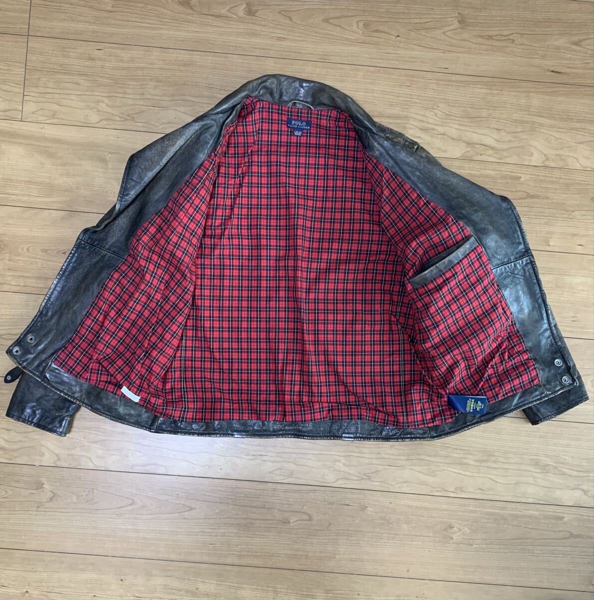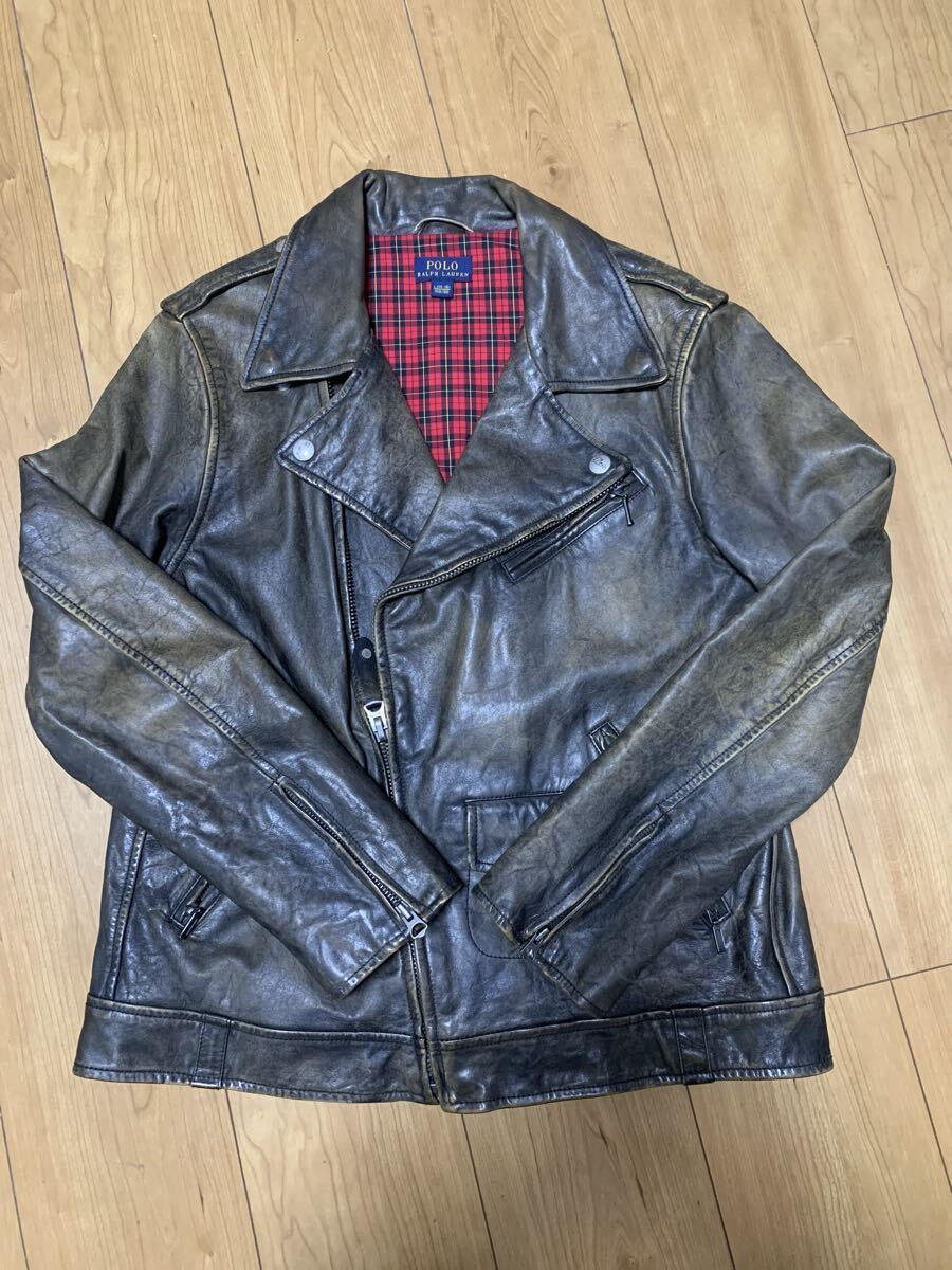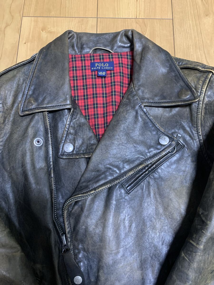 美品☆[POLO RALPH LAUREN] ヴィンテージ加工 ダブルライダース レザージャケット 160㎝ 牛革 ブラウン ポロラルフローレン