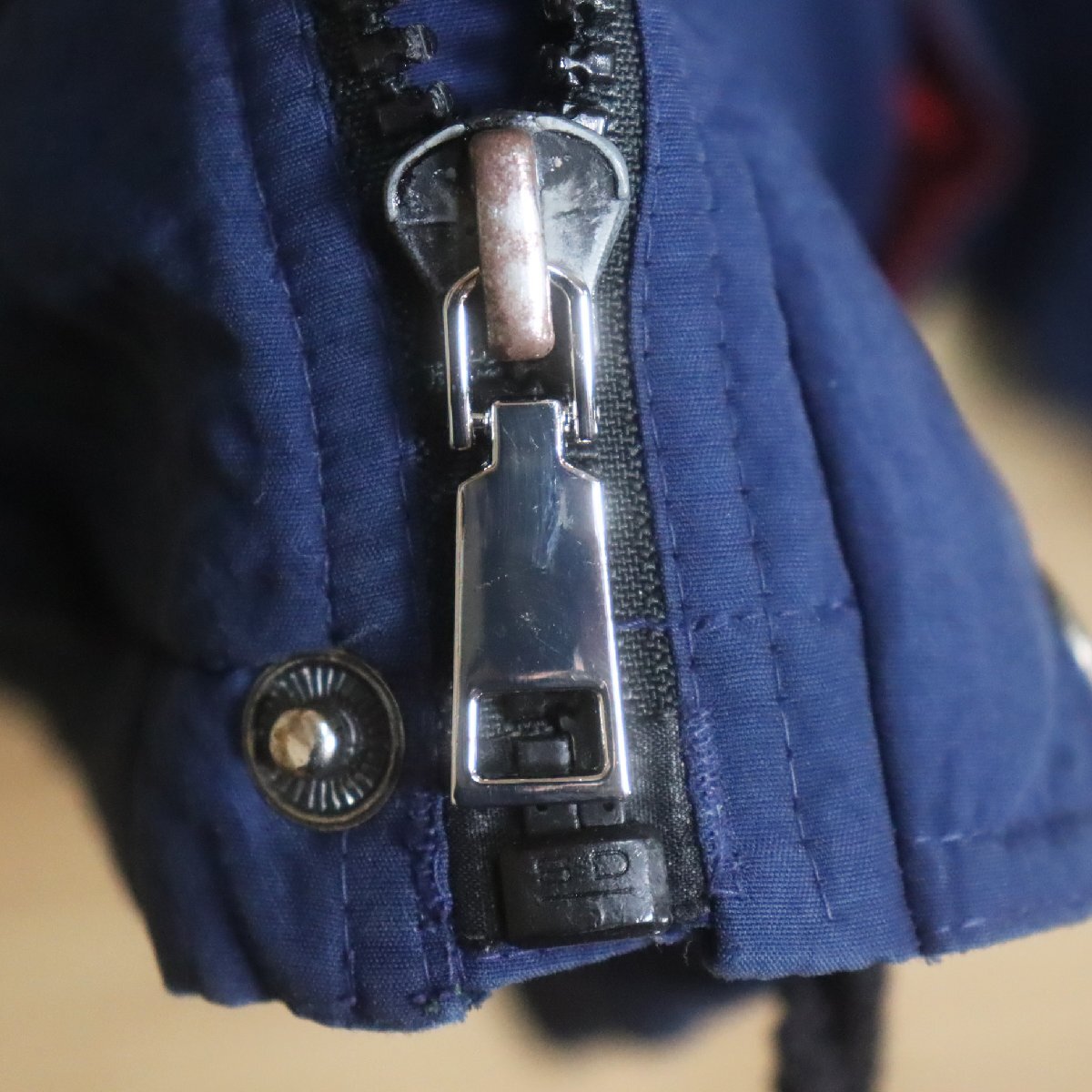 中古品です。使用感があります。右腕に細かい擦れ、両ポケットにリペア跡、背中に小さい擦り切れ、フロントジッパーに付け替えがありますが、他に大きなダメージはありません。