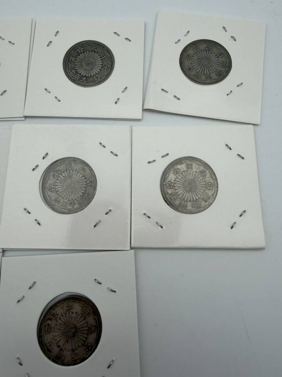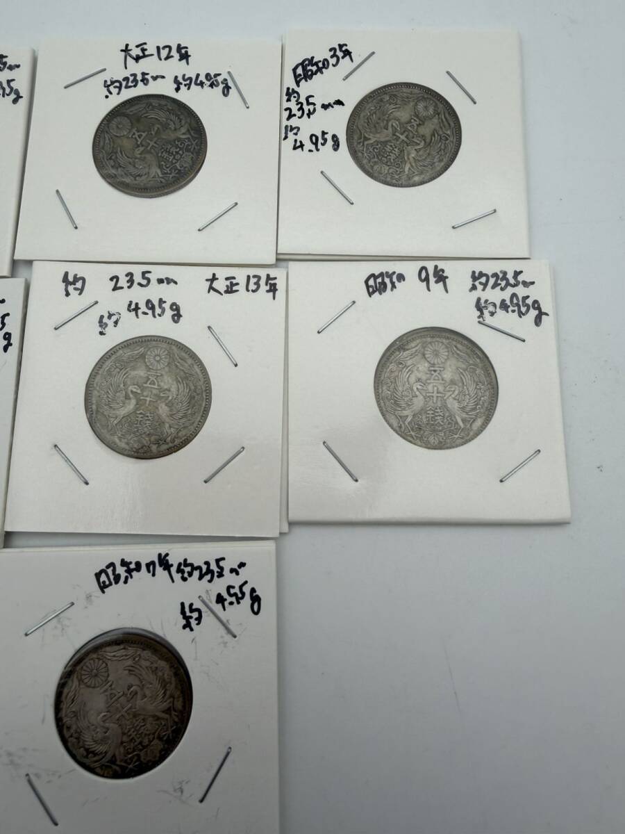 商品説明 / Item Description 昭和期の50銭銀貨10枚セットです。 直径は約23.5mmで、いずれも経年によるスレや変色が見られますが、古銭としての風合いを保っています。 コレクションや素材用、昭和レトロ品としてもおすすめです。 A lot of 10 Japanese 50 Sen silver coins from the Showa era, each measuring approximately 23.5mm in diameter. These vintage coins show signs of age and wear, adding to their antique charm — ideal for collectors or historical enthusiasts. 商品詳細 / Details 額面 / Denomination:50銭 枚数 / Quantity:10枚セット 材質 / Composition:銀(Silver content, unspecified) 直径 / Diameter:約23.5mm 年代 / Era:昭和期(Showa Era) 状態 / Condition:中古・経年変化あり(スレ・変色等 / Pre-owned, aged with scratches or toning) 注意事項 / Notes ※状態・銀含有量は個体差があります。 ※画像をよくご確認のうえご入札ください。 ※年代・ミントマーク等の指定はできません。 Condition varies per coin. Silver content not tested. Please check photos carefully before bidding.