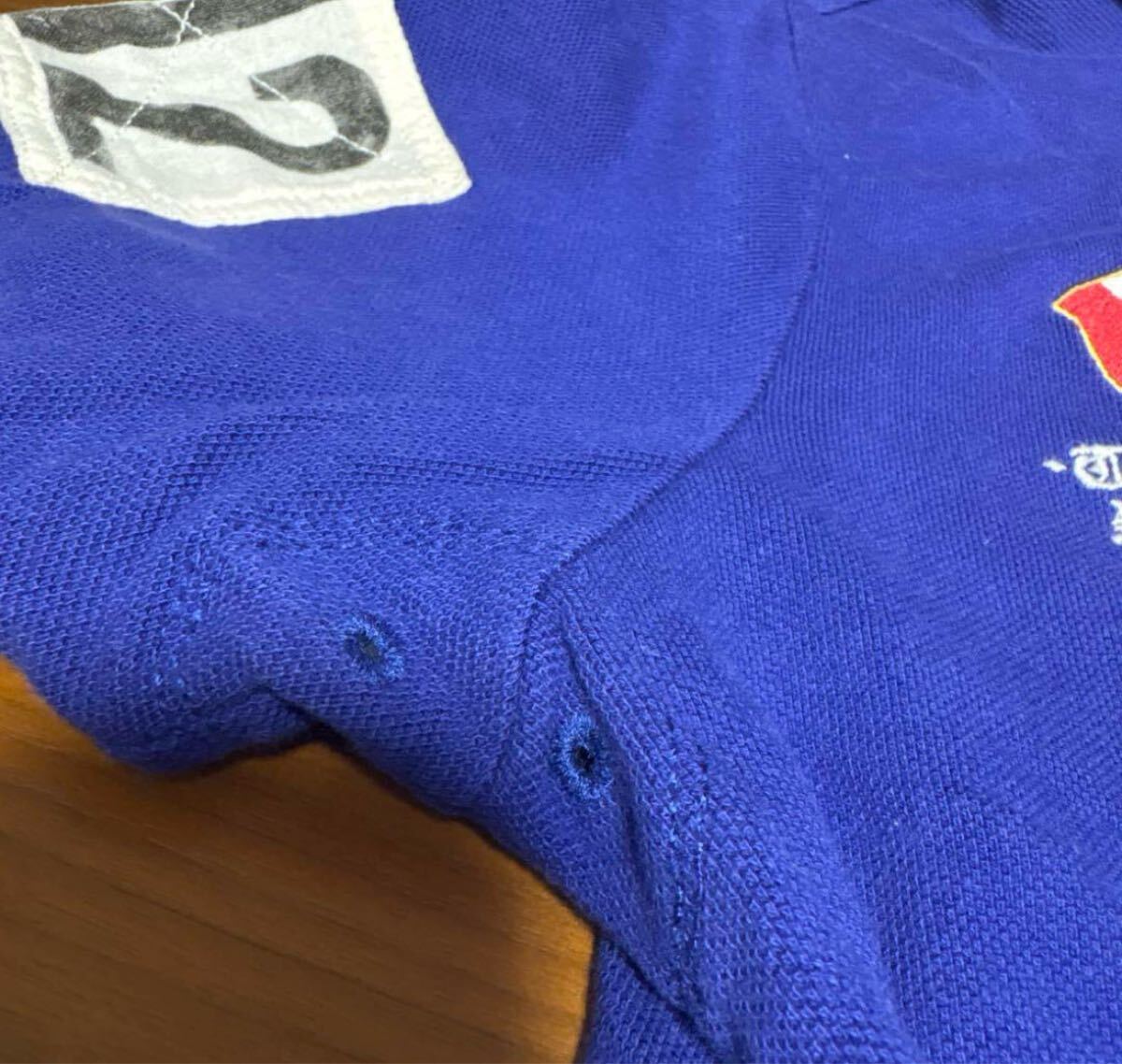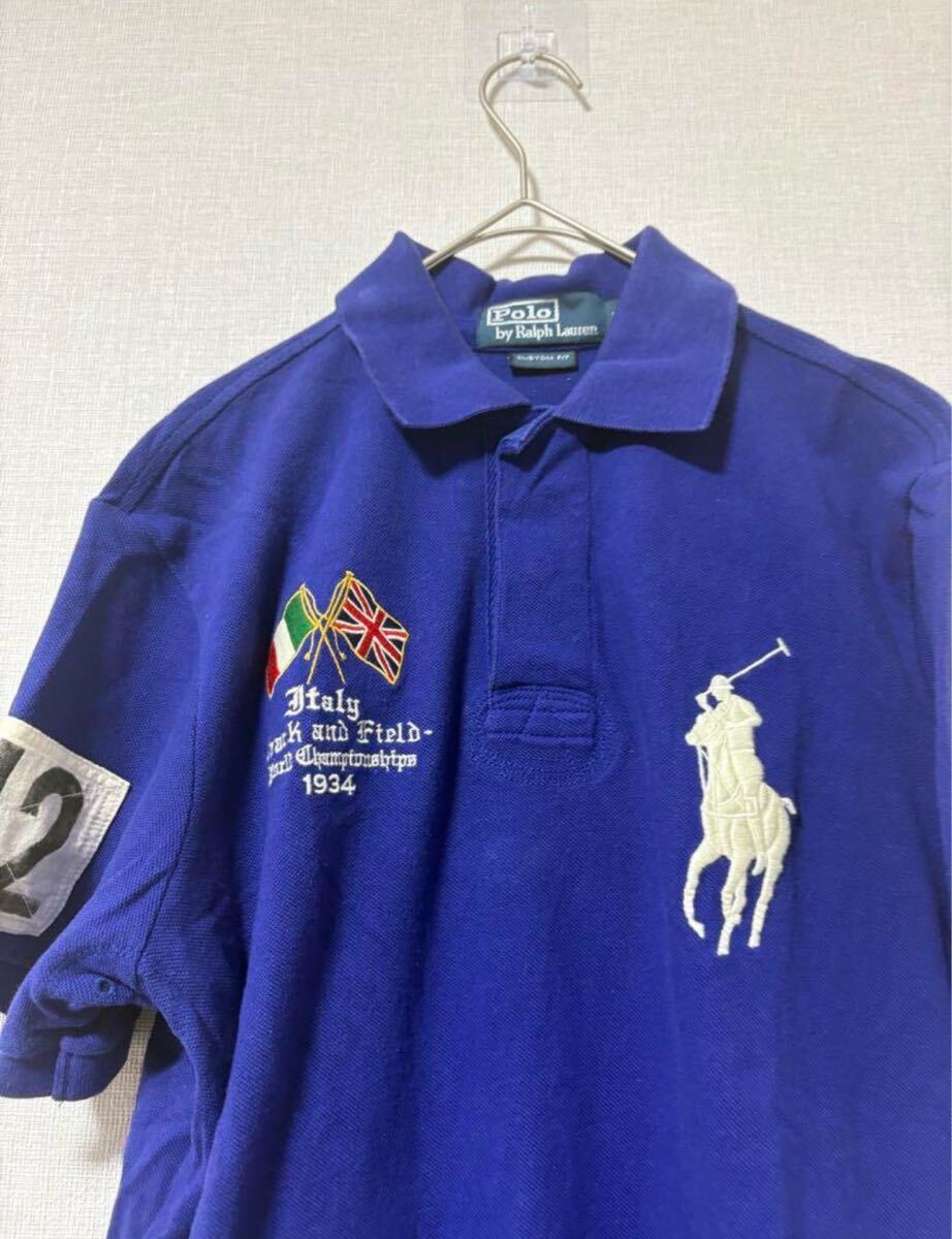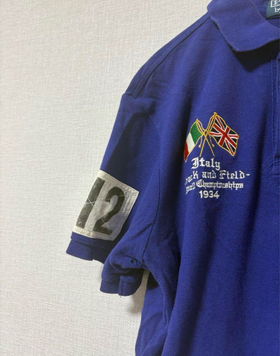 国旗刺繍と番号12が特徴のカスタムフィットポロシャツ。