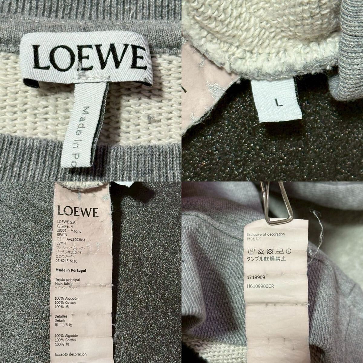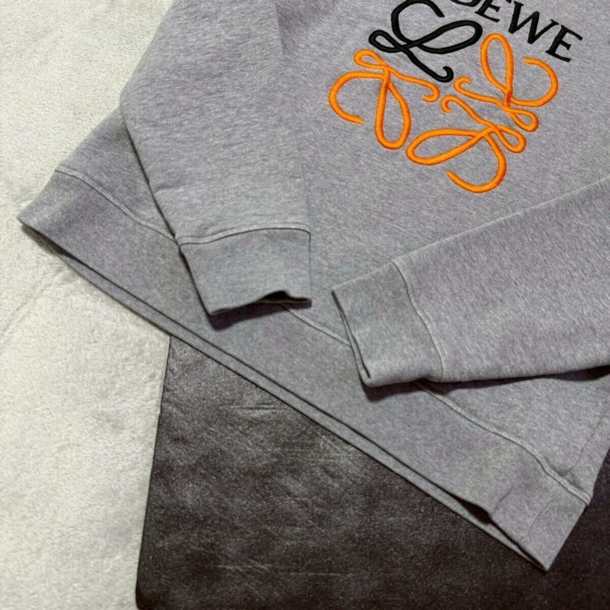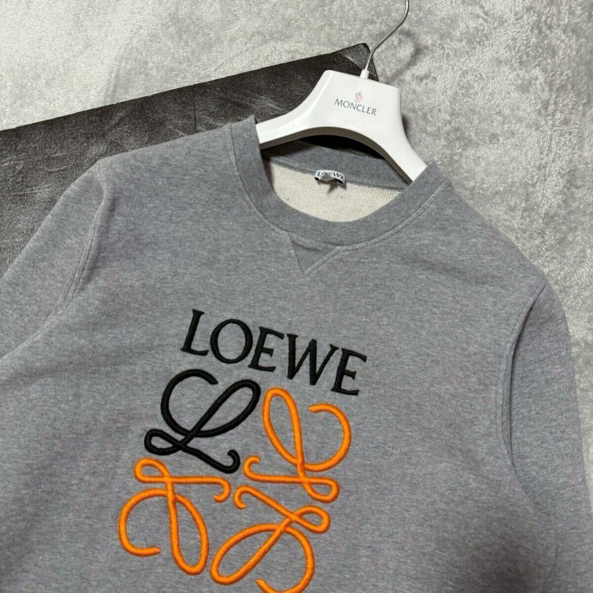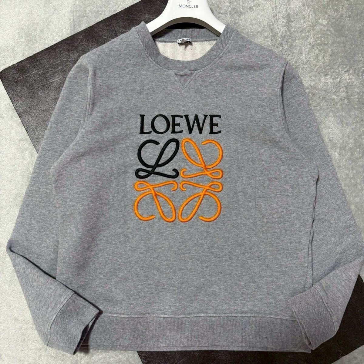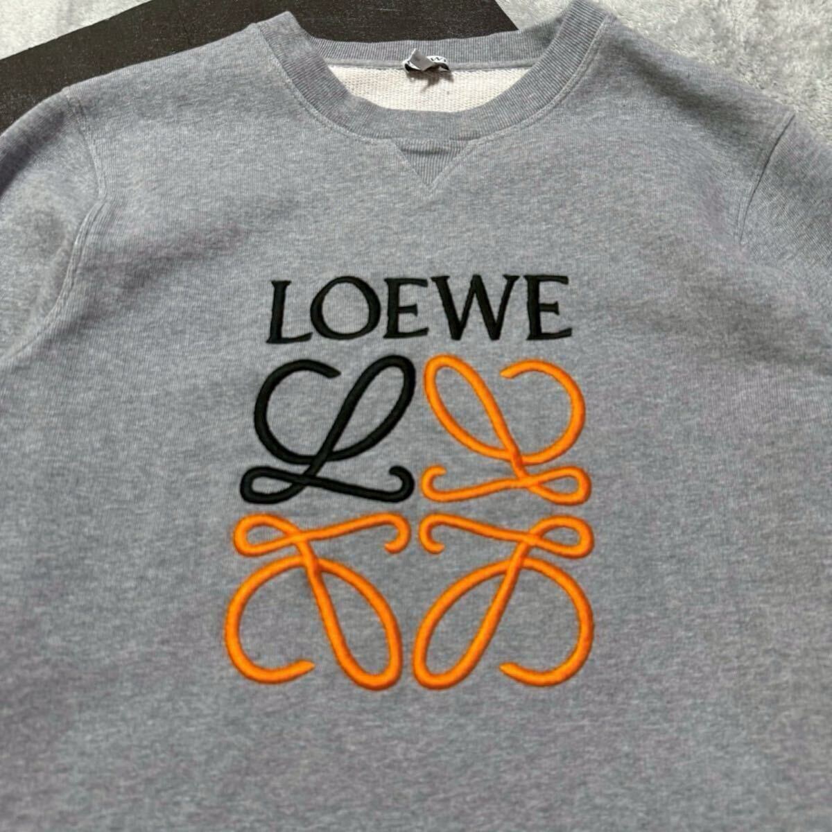 良品★Lサイズ/LOEWE ロエベ アナグラム エンブロイダリー ロゴ 刺繍 スウェット トレーナー クルーネック グレー メンズ