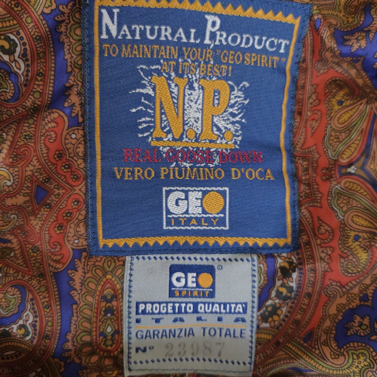 《GEO ITALY ゲオ》表地:ポリエステル50%・ポリウレタン30%・ナイロン20%/裏地:ポリエステル100%/ダウン85%・フェザー15%/イタリア製