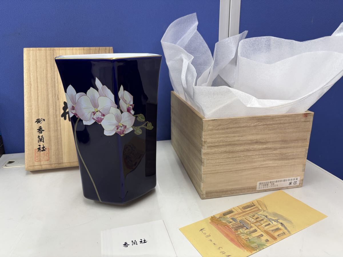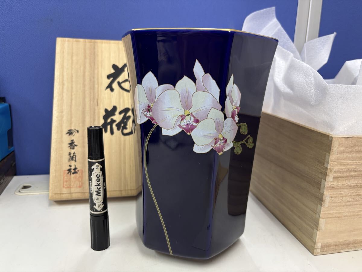 商品説明香蘭社 ルリ胡蝶蘭 花瓶 花器/未使用保管品