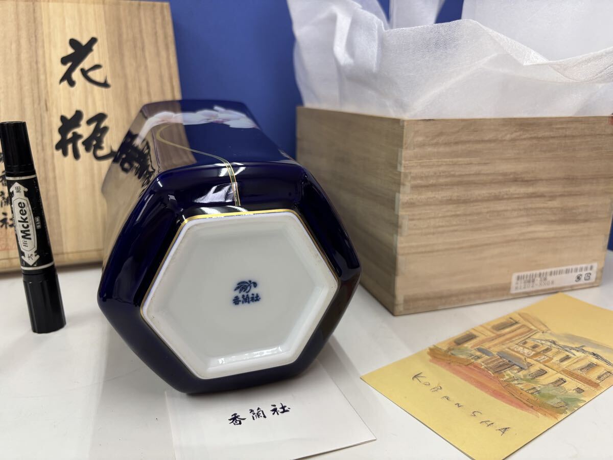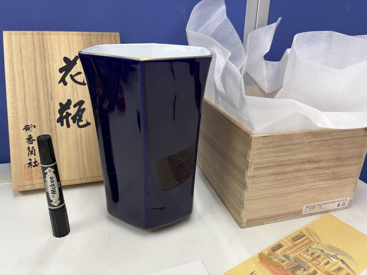 香蘭社 ルリ胡蝶蘭 花瓶 花器/未使用保管品