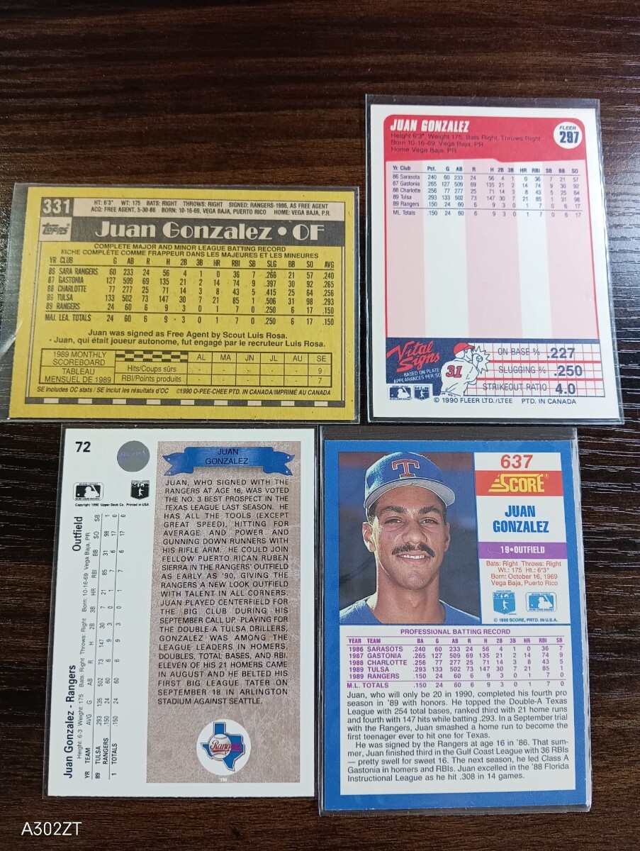 【ルーキーカード4枚セット】 1990年 JUAN GONZALEZ ファン・ゴンザレス ROOKIE RC です。大切に保管しておりました。送料は、普通郵便で110円です。