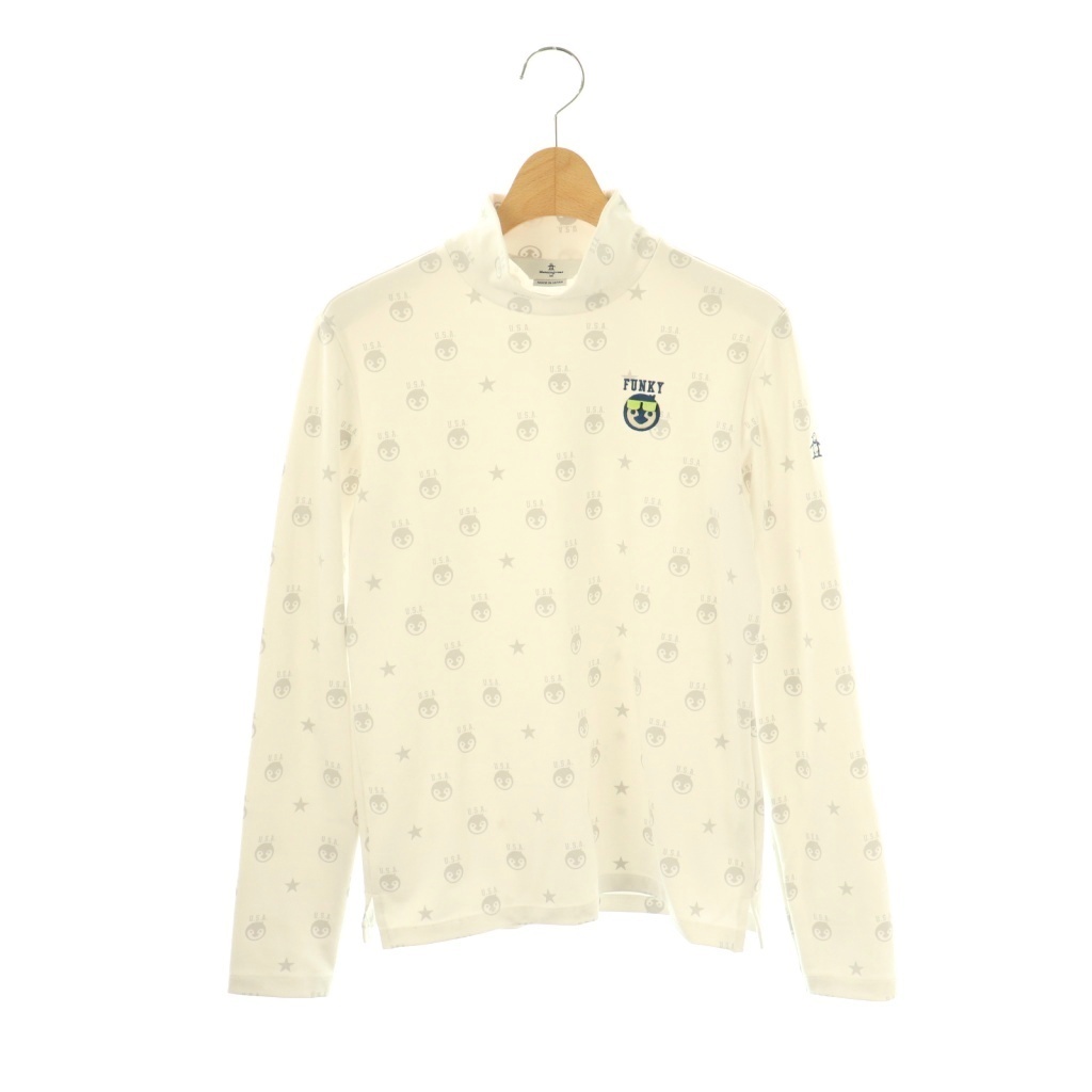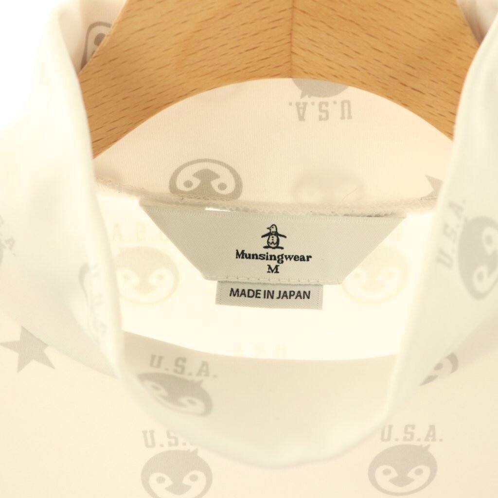 マンシングウェア MUNSINGWEAR 総柄ロンT カットソー ストレッチ M 白 グレー /CX ■OS レディース