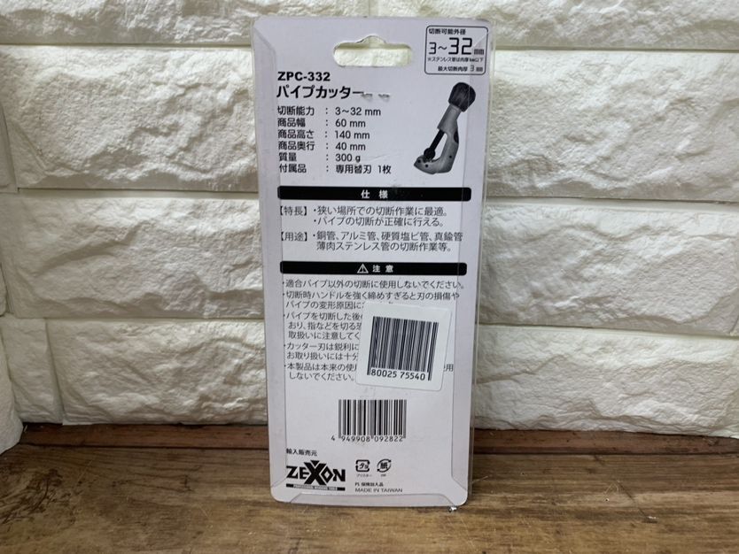 ▽【未使用品】ゼクソン ZPC-332 パイプカッター 専用替刃1枚付 ZEXON