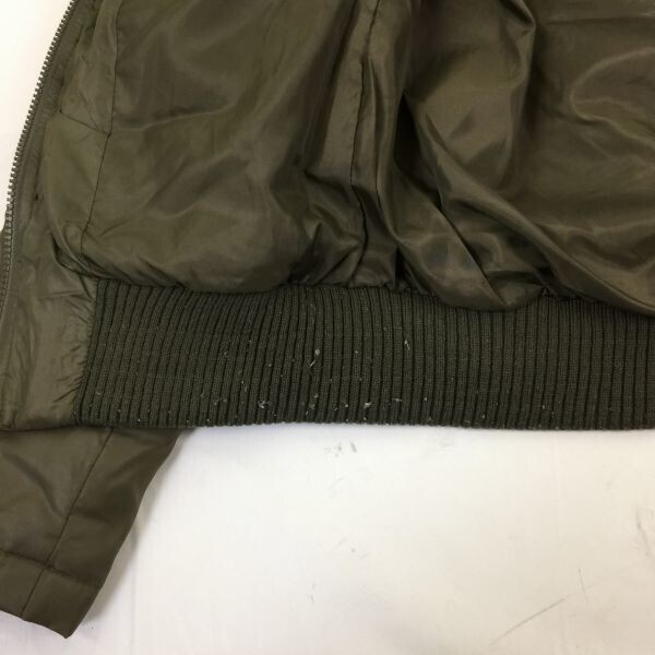 リブ部分に若干の毛玉があり、襟元や袖にもやや使用感が見られます。そのままでもご着用いただけますが、気になる場合はクリーニングしてからご使用ください。(画像参照)