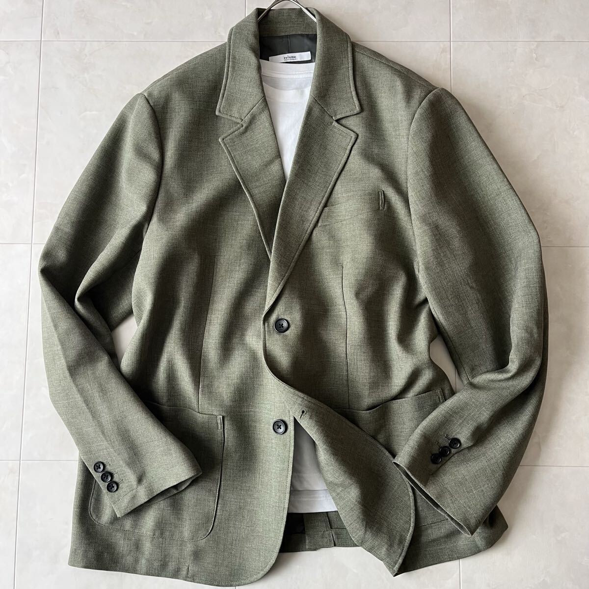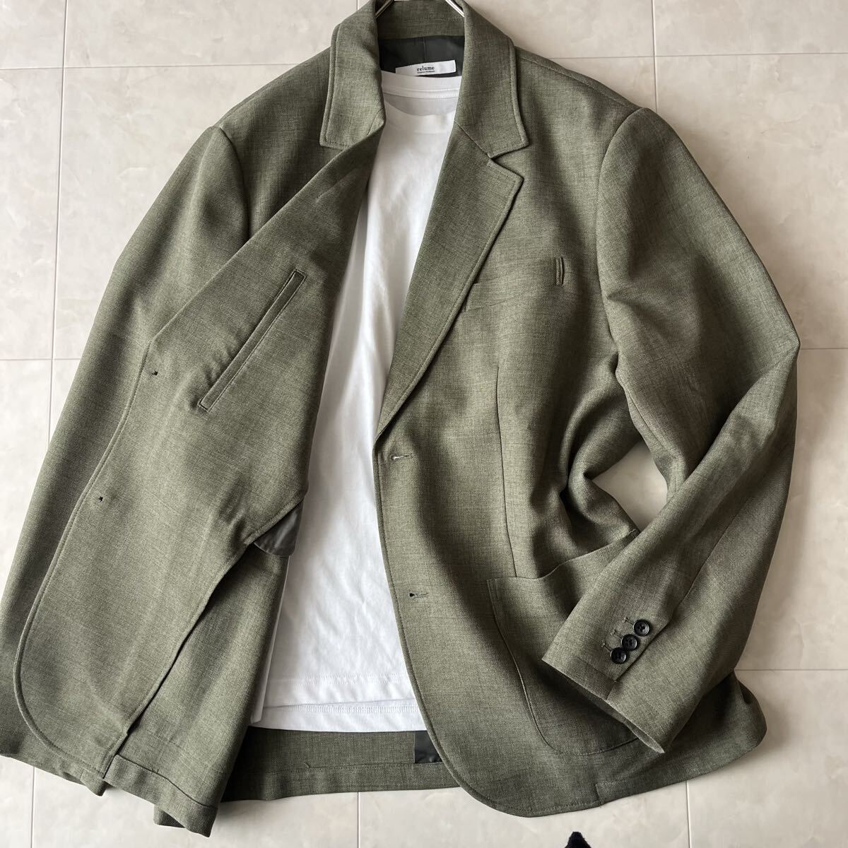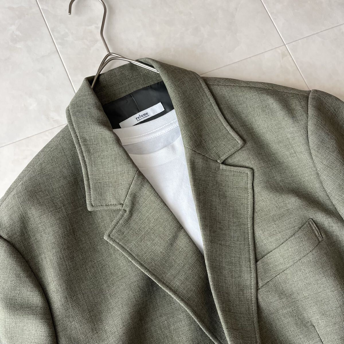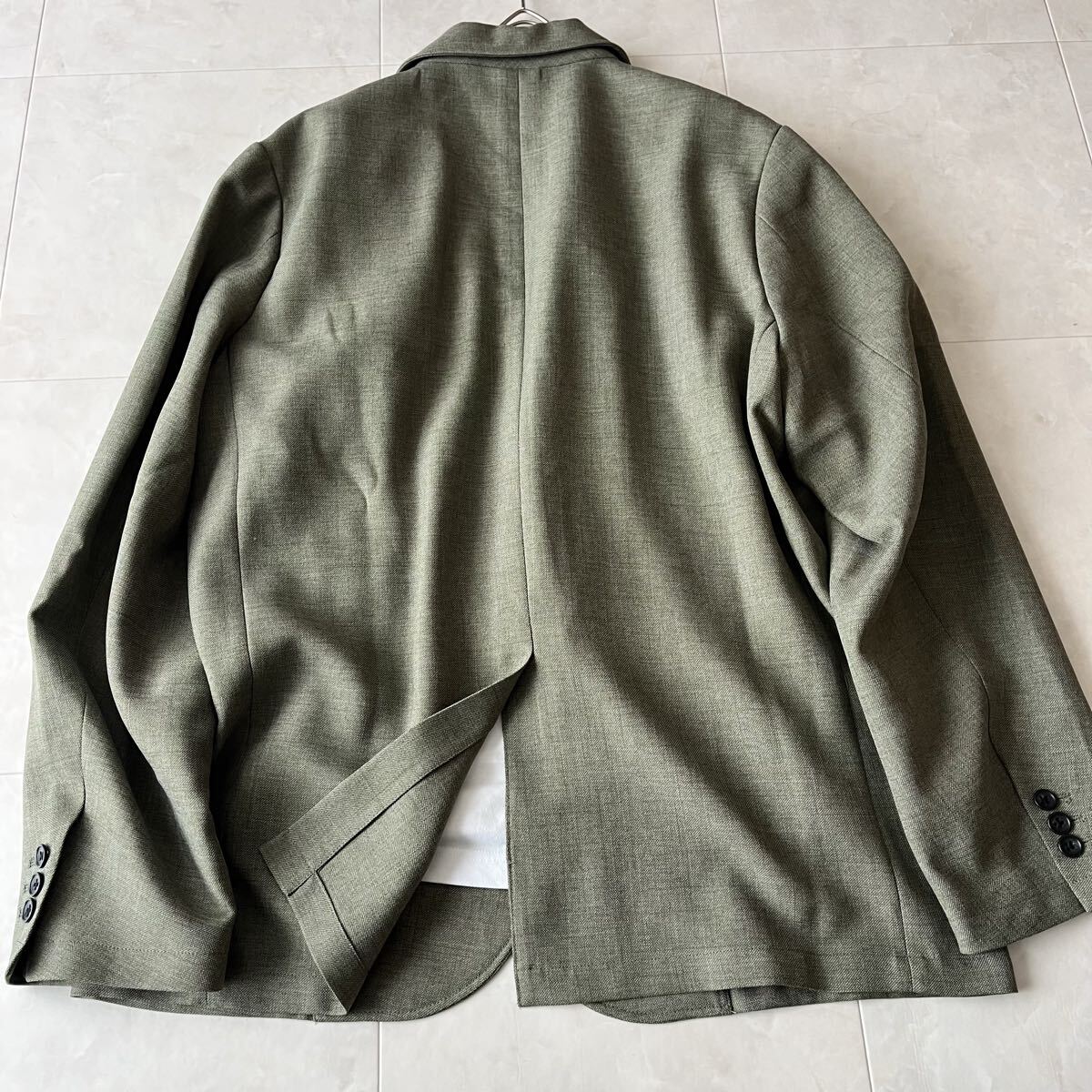 春〜初夏にぴったりな麻調の風合いと落ち着いたカーキグリーン色。2つボタン仕様で、カジュアルからキレイめまで使える一着です。極美品ランクなので、状態にこだわる方にもおすすめ。