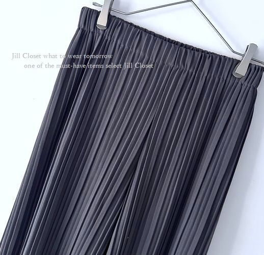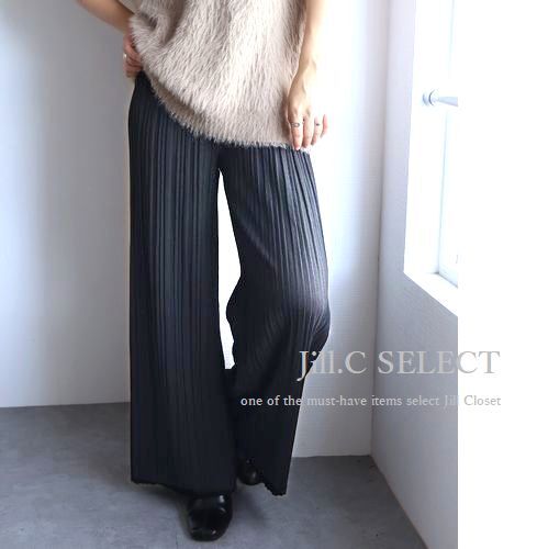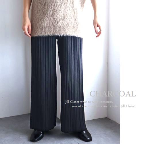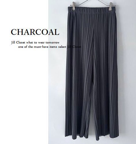新品/CHARCOAL【送料185円】伸縮◎ウエストゆったり&シワになりにくい♪プリーツ加工*美ライン ワイドパンツ*通勤オフィス対応◎7714