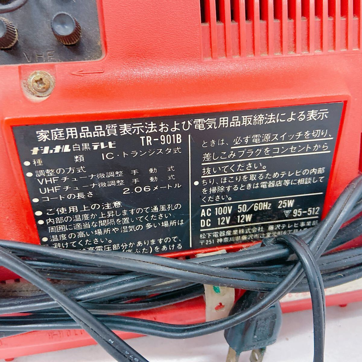 10B006 National ナショナル 白黒テレビ TR-901B TV レトロ 赤 ジャンク品 プラグ溶け有 通電動作未確認