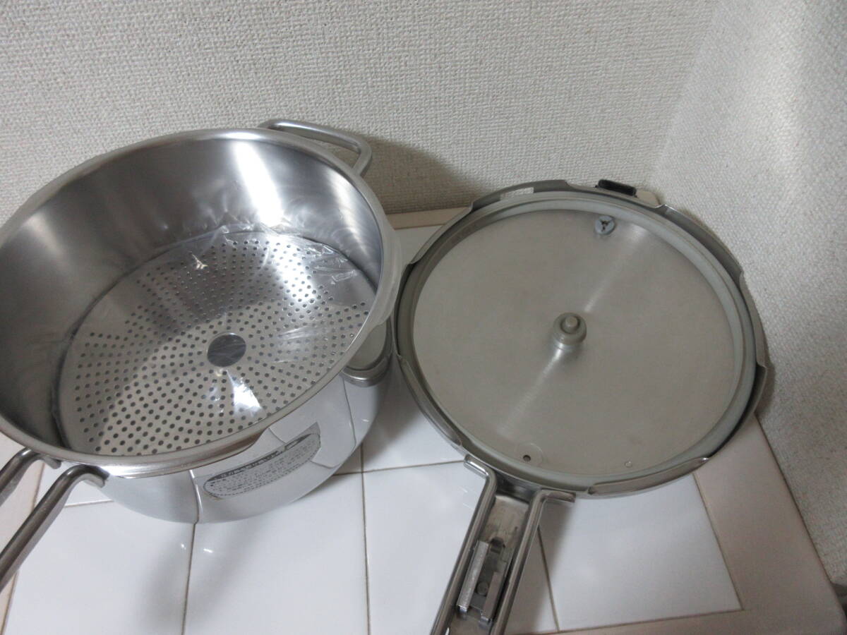 ◎中古・タッパーウエア【パーフェクトキッチン・5L】【フタ+本体+すのこ+箱】圧力鍋 ドイツ製 USED 3層ステンレス製
