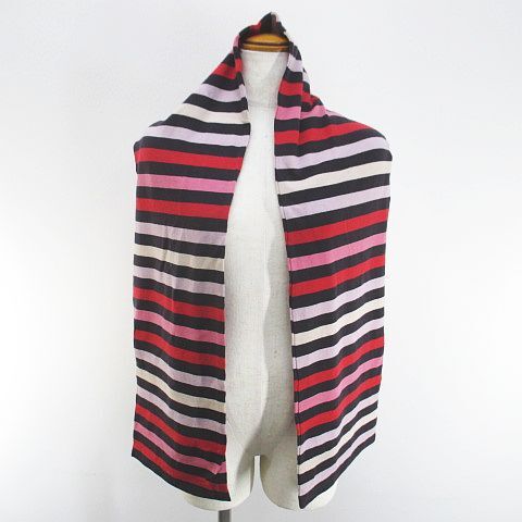 ジョンスメドレー JOHN SMEDLEY ボーダー マフラー ストール 紫系 パープル イギリス製 毛 ウール レディース