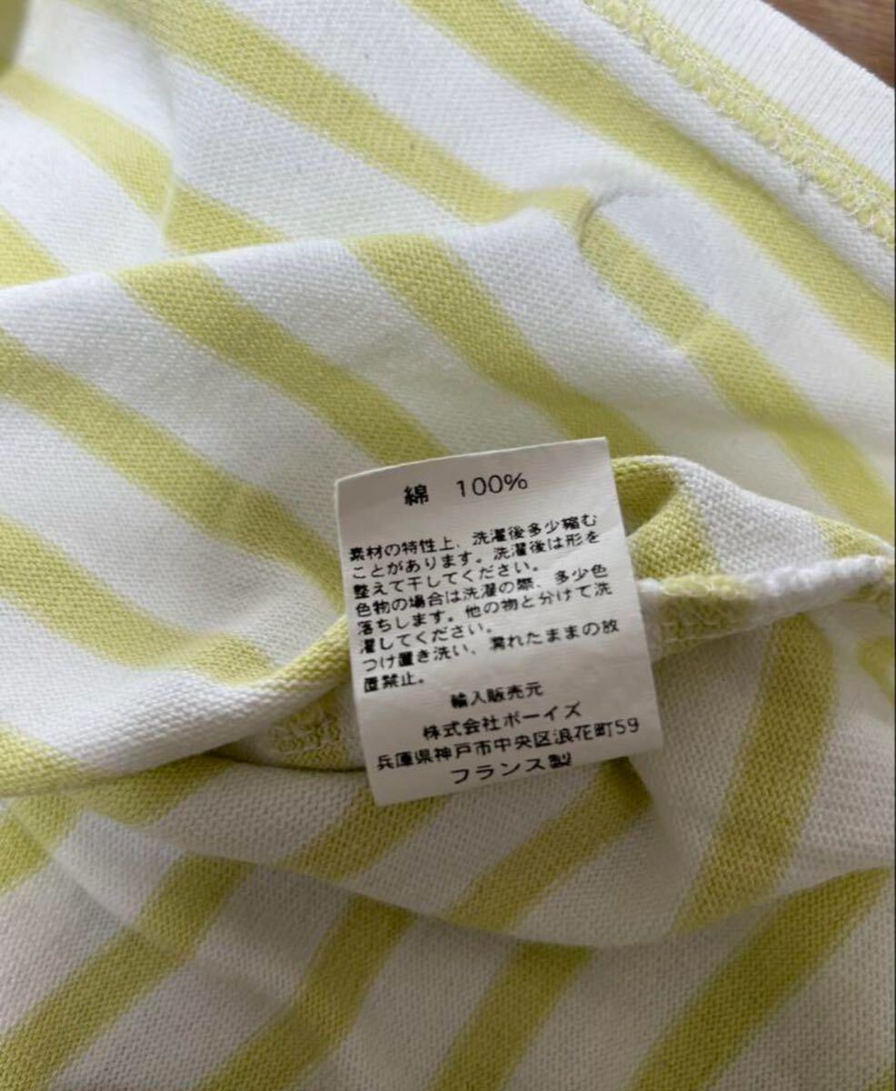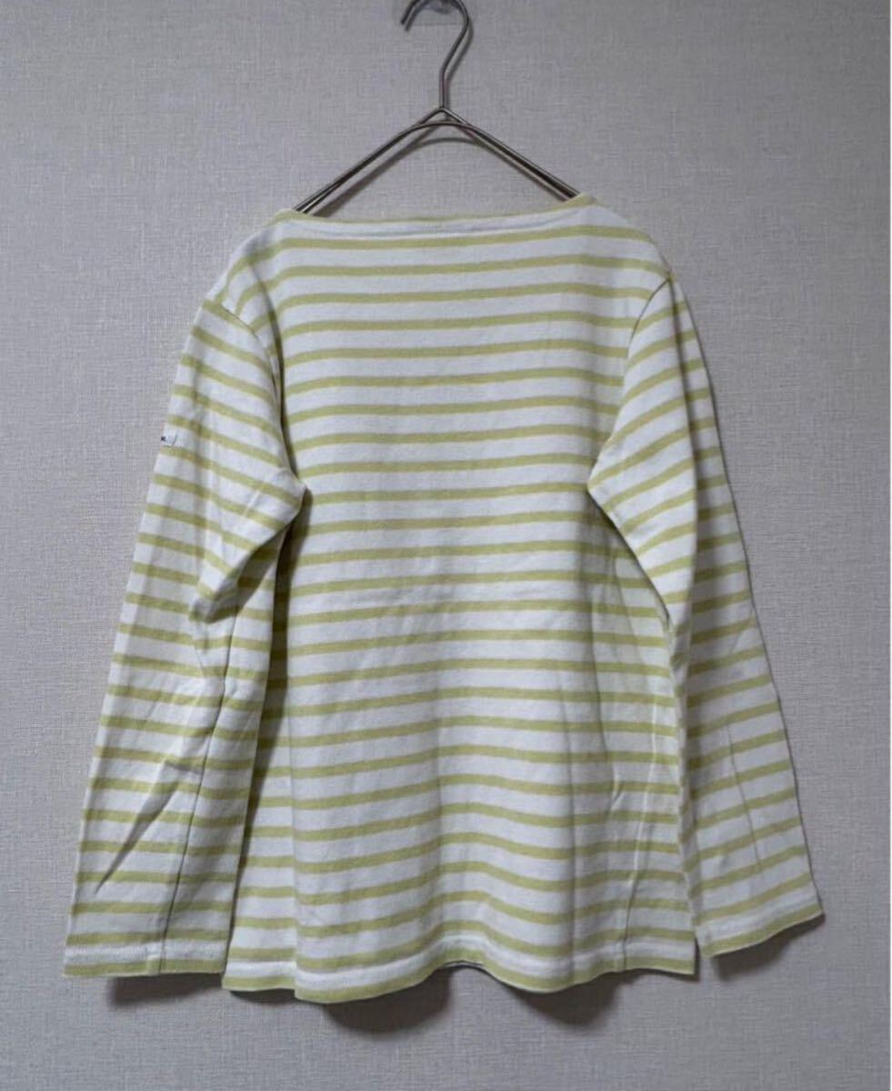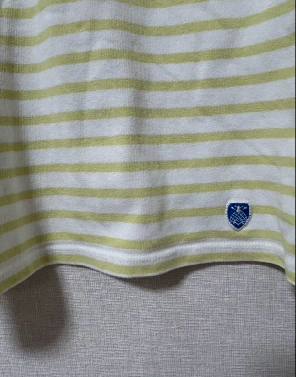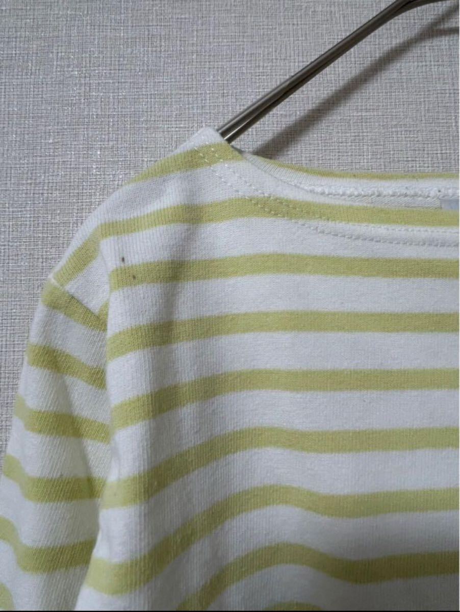 ORCIVALのホワイトとライムのストライプ長袖Tシャツ、クルーネックデザイン。