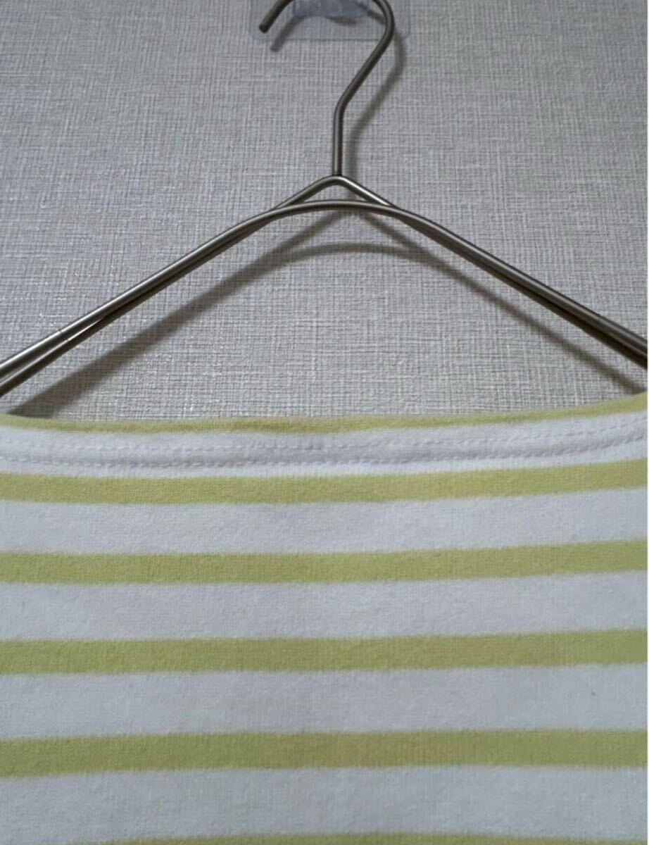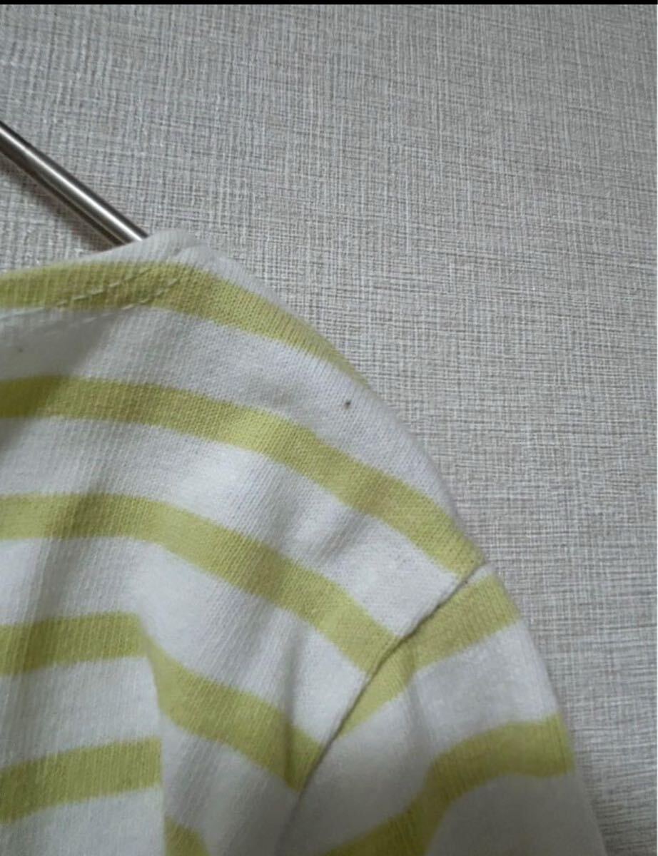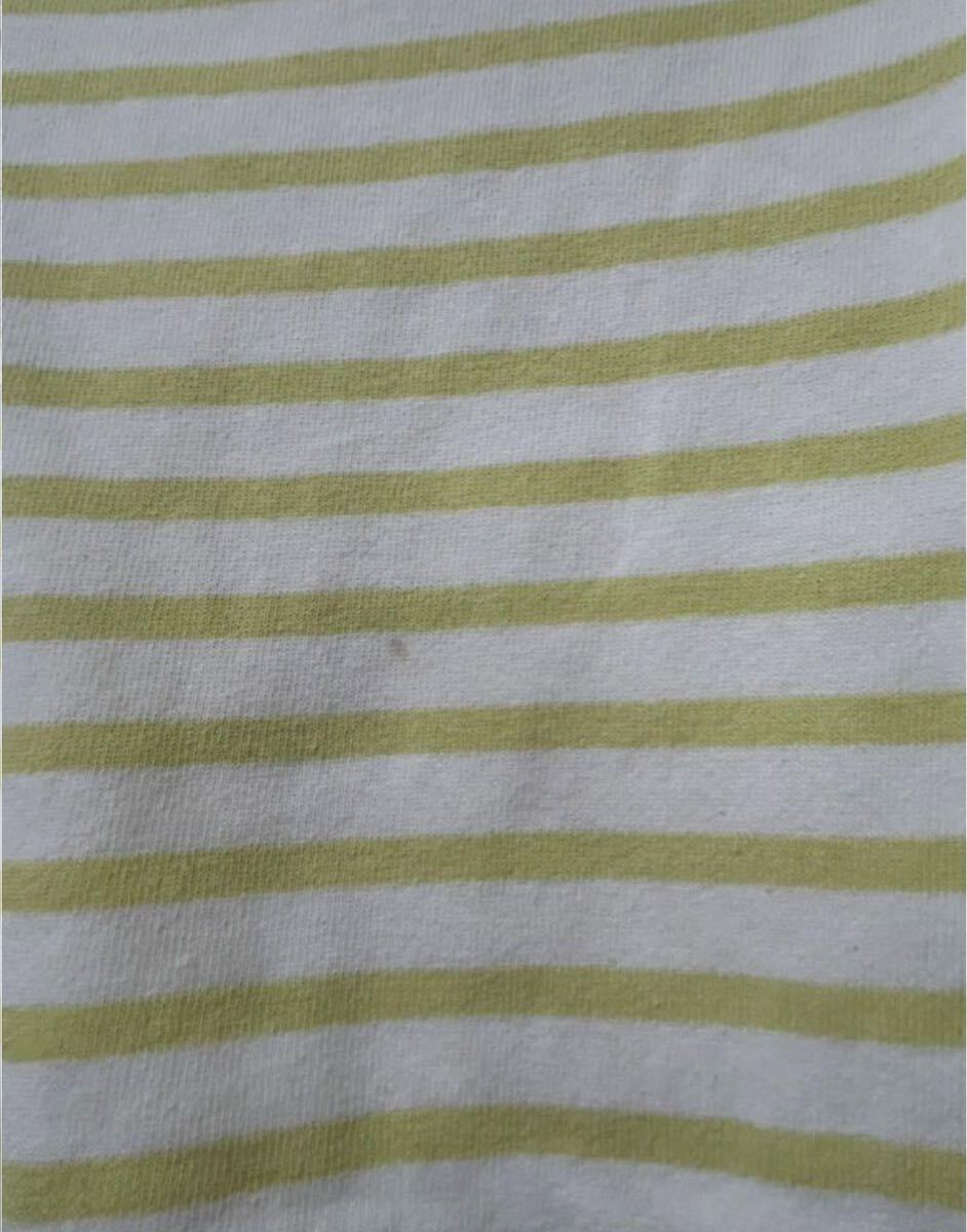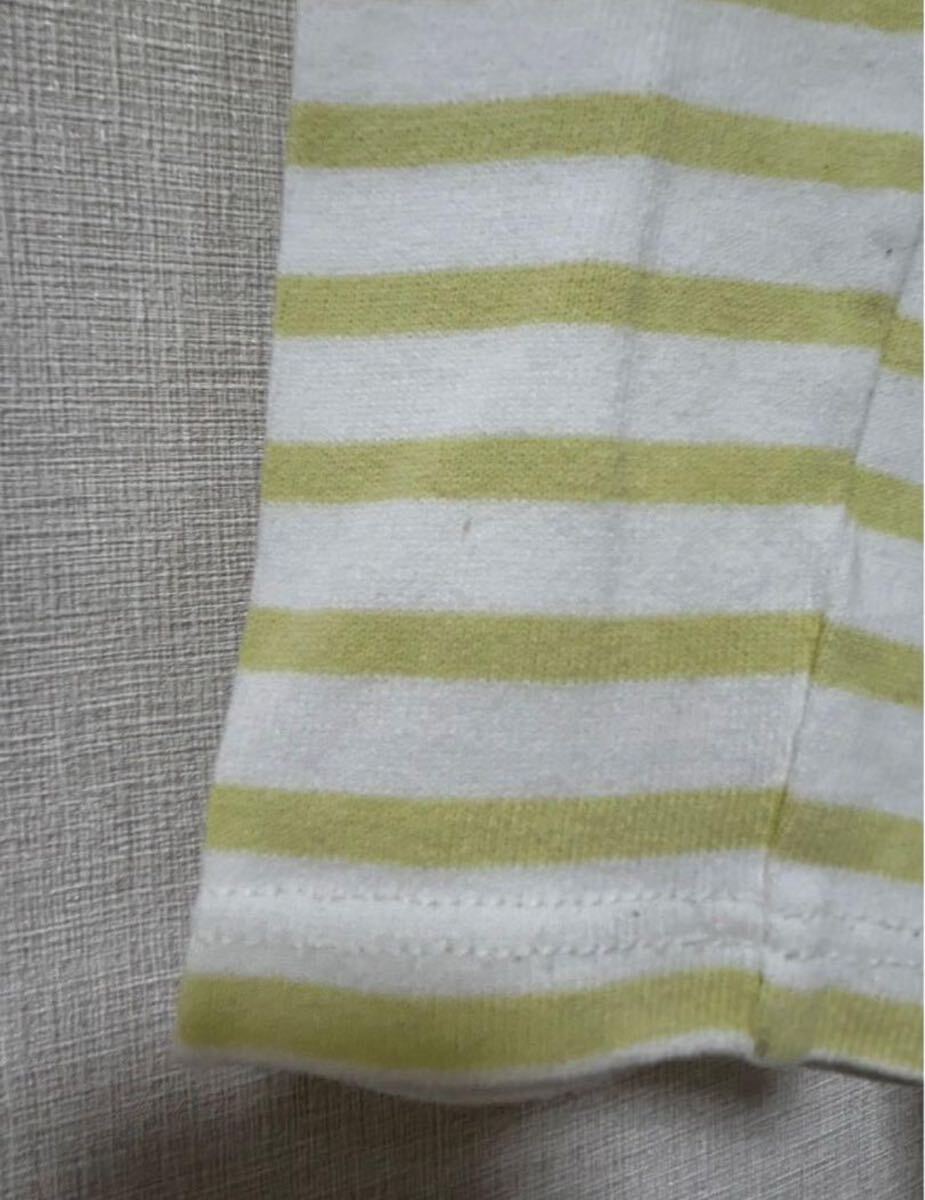 ORCIVALのホワイトとライムのストライプ長袖Tシャツ、クルーネックデザイン。