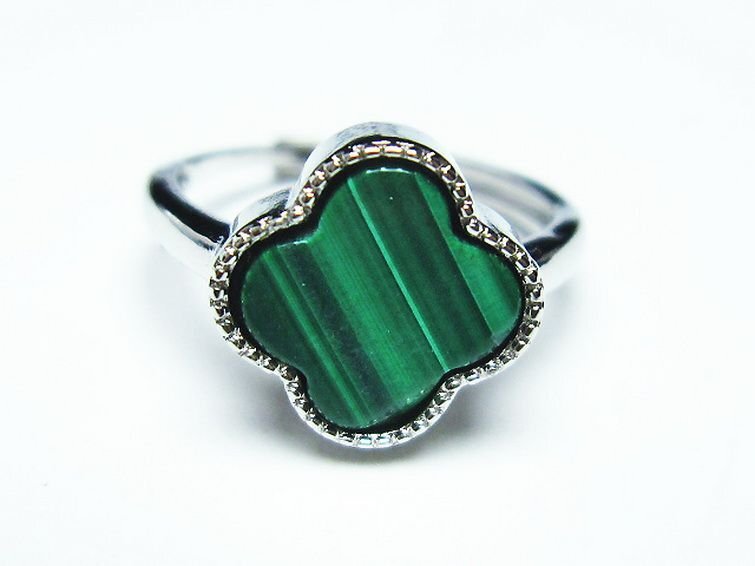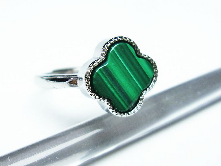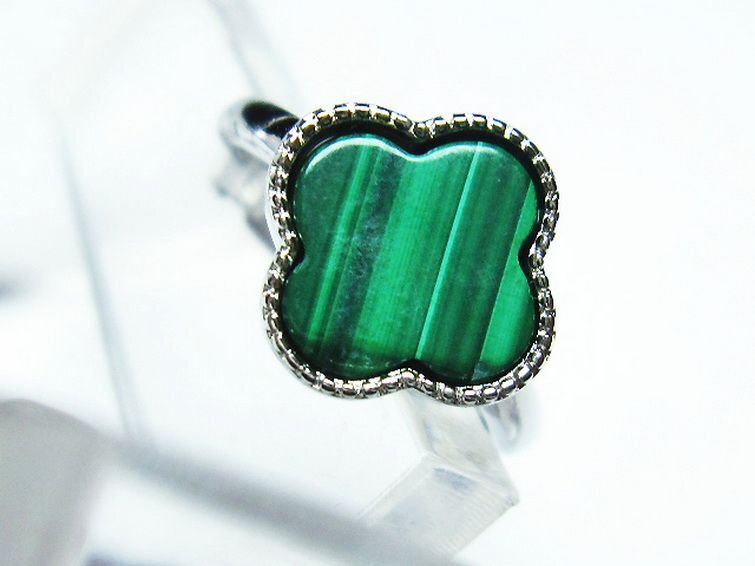 ■商品名: マラカイト指輪 ■商品ID: T290-1164 ■商品重量:約 2.8g ■商品サイズ:サイズ:14号 【マラカイト(孔雀石)】 孔雀の羽のような鮮やかな緑色と独自の縞模様を持つ天然石で、マラカイトは鮮やかかつ縞模様がくっきりと見えるものほど価値が高いとされています。 産地としてはロシアのウラル山脈にあるニジニ・タギリスクの銅鉱山が最も有名で、かつては日本でも秋田県にある荒川鉱山などで良質なマラカイトが産出されていました。 マラカイトの歴史は古く、古代エジプトでは紀元前3000年頃から顔料や化粧品の材料として用いられていたといわれています。 かの有名なクレオパトラも魔除けにマラカイトの粉末を油で溶いたものをアイシャドウとして使っていたという記録も残っています。 マラカイトは強い邪気払いのエネルギーを持ち、災いを事前に察知する能力を高めるとされているのでビジネス面でのお守りとして心強いサポートが得られるでしょう。 また精神と肉体の両方にヒーリング効果をもたらしてくれますので、ストレスで精神的に疲れてしまったり、しっかりとした休息が取れずに体力的に辛い時に身に着けることをおすすめします。 ⇒ マラカイトをもっと詳しく ◆ワンポイント情報 マラカイトは硬度が3.6~4と低いため衝撃を与えると割れてしまうので取り扱いには十分注意しましょう。 また、水分や塩分にも弱いので身に着けた後は柔らかい布で拭きとり、こまめにケアをするようにしてください。 |