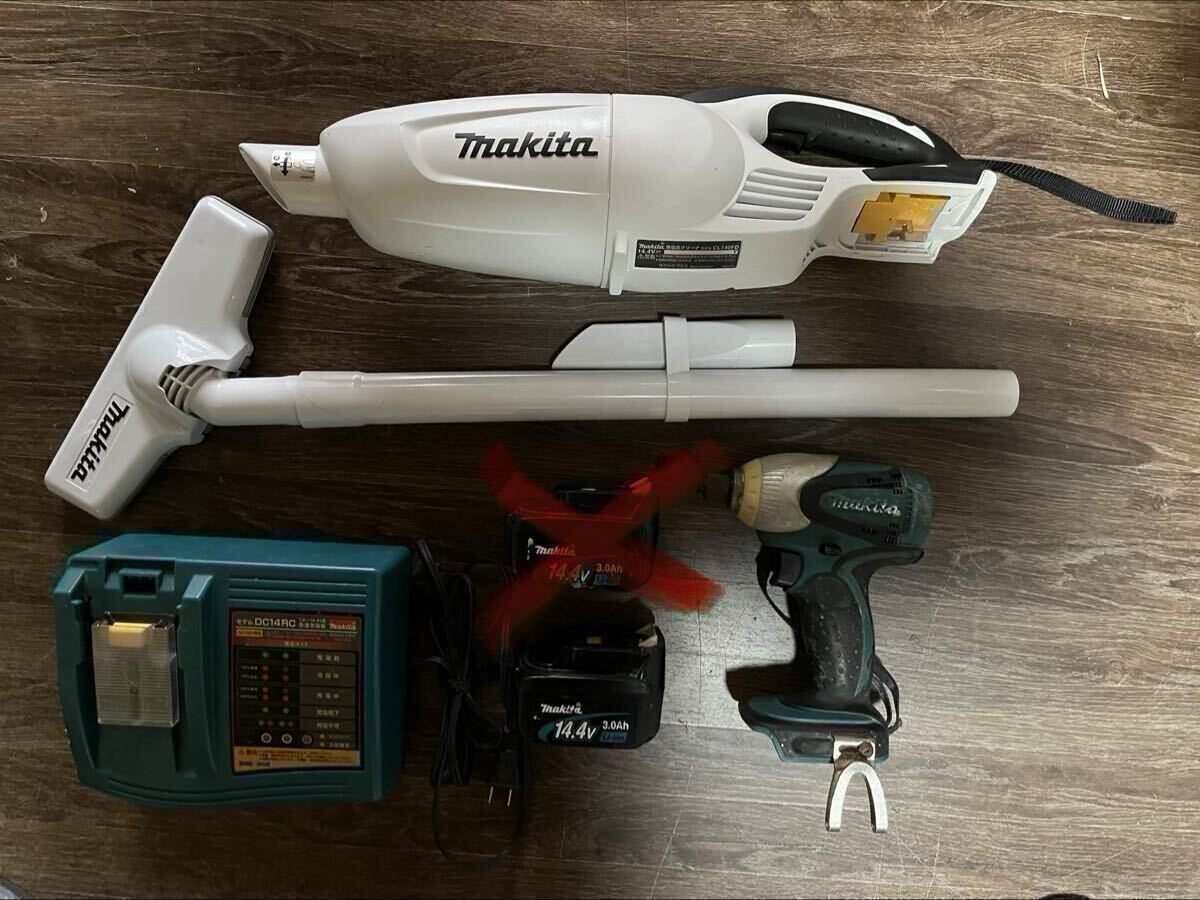 マキタのカプセル式クリーナー、インパクトドライバー、バッテリー、充電器のセットです。(カプセル式クリーナー、インパクトドライバー、充電器共に動作確認済み。)
