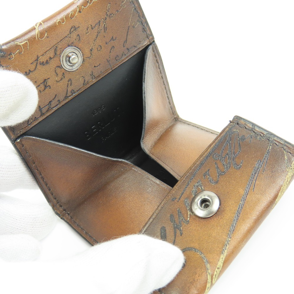 203006★1円スタート★Berluti ベルルッティ 外美品 スクリット カリグラフィ 小銭入れ コインケース ヴェネチアンレザー ブラウン