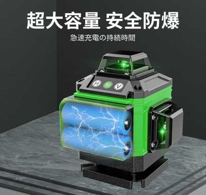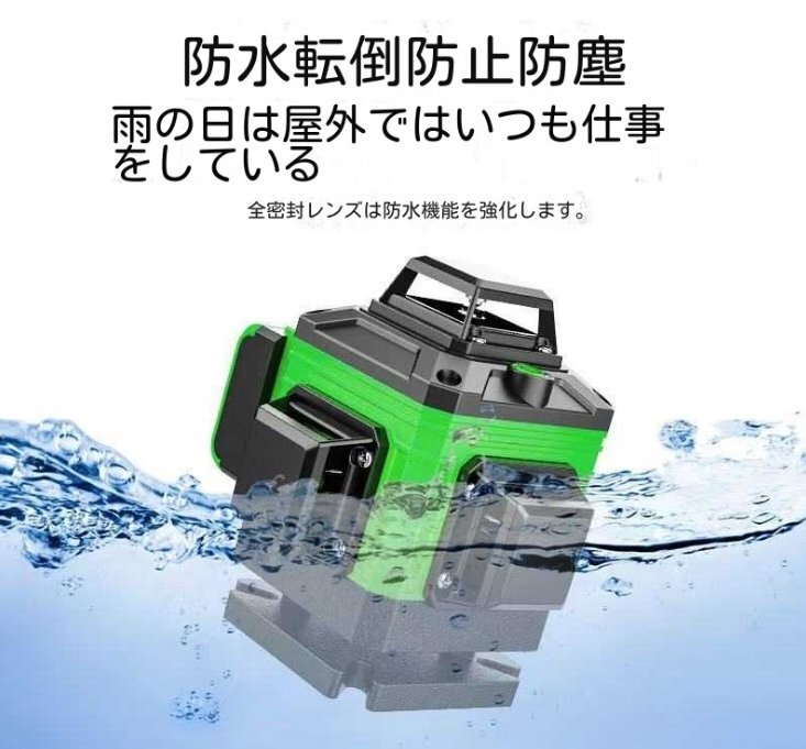 ーザー墨出し器 4x360°グリーンレーザー 水平器 16ライン IP65防塵防水 輝度調整 自動補正 リモコン操作 ートル バッテリー*2