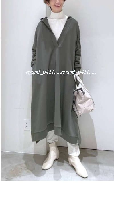 BAYFLOWのチャコールグレー・裏毛スウェット Vネック ゆったり パーカーワンピースです♪