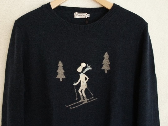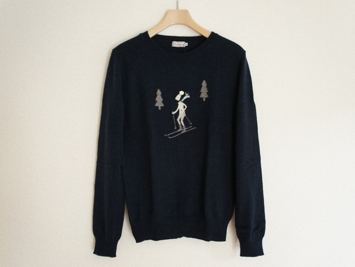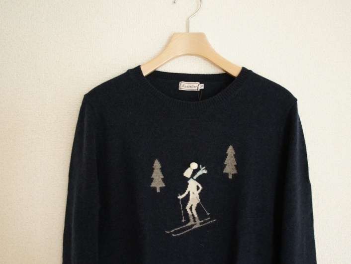 アンゴラやウールをブレンドした上質なぬくもりを伝えるニットプルオーバー。気になるデコルテを自然とカバーできるハイネックで上品な印象に。フロントにはスキーヤーのグラフィックを描き、ユニークな遊び心を演出。