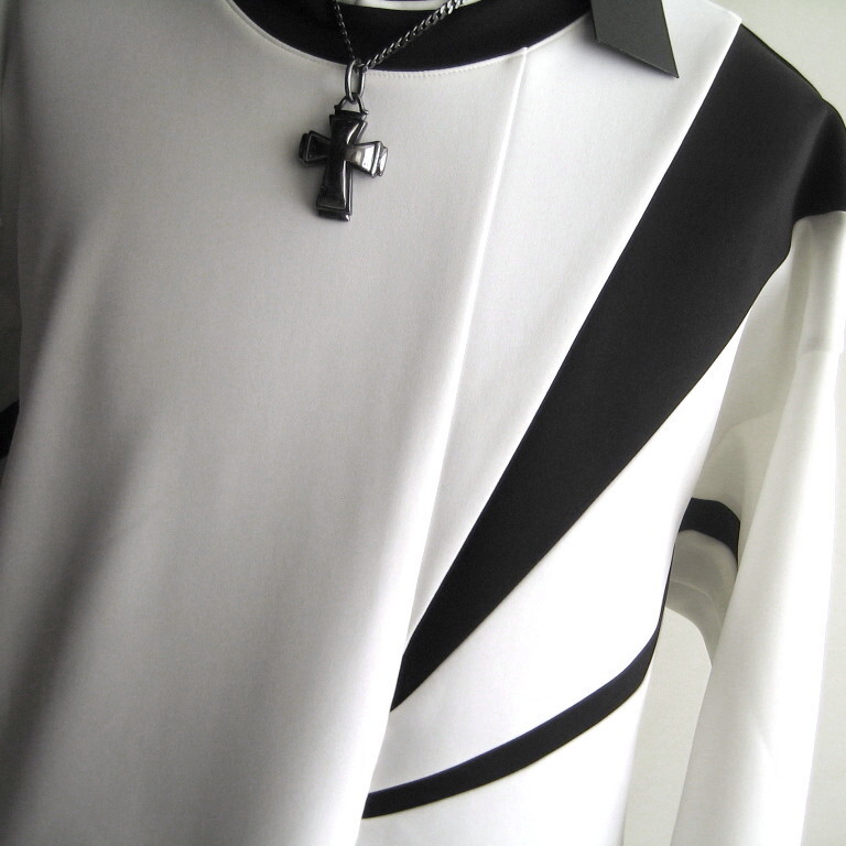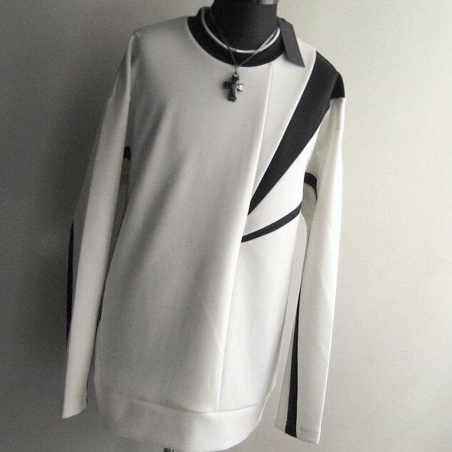 ■しっとりと滑らかなジャージー素材をモノトーンのバイカラーで切替えインパクトある表情に仕上げています