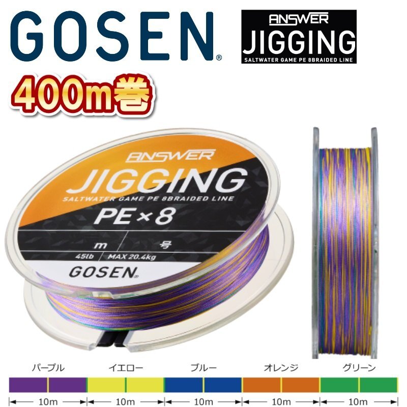 ゴーセン アンサージギング PEx8 1号 20lb 400m巻 5色分け PE×8 日本製 国産8本組PEライン
