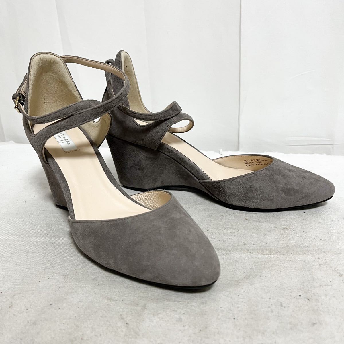 K31★ 美品 箱付き COLE HAAN GRAND.OS コールハーン パンプス サンダル ヒール ストラップ スエード 6.5 グレー レディース