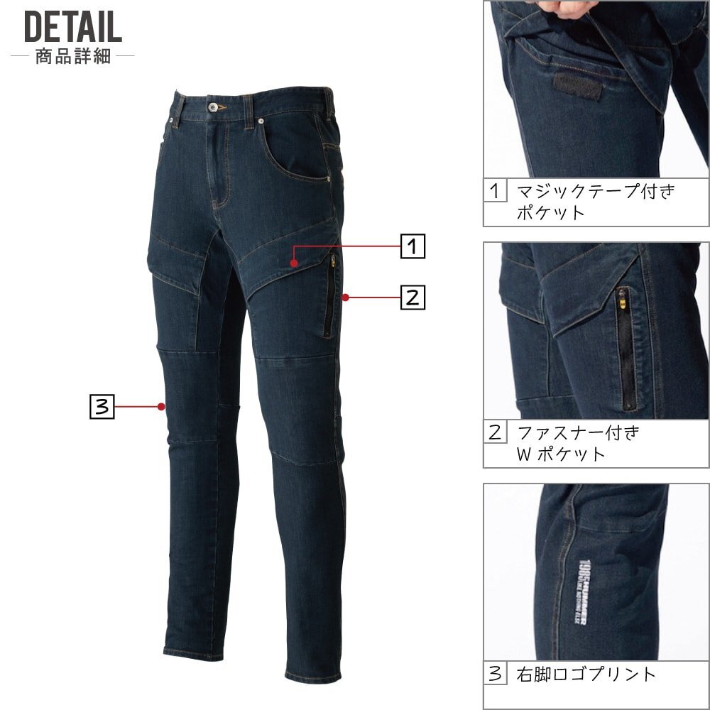 特長:ダブルストレッチ/コインポケット/マジックテープ付カーゴポケット/ファスナー付ダブルポケット