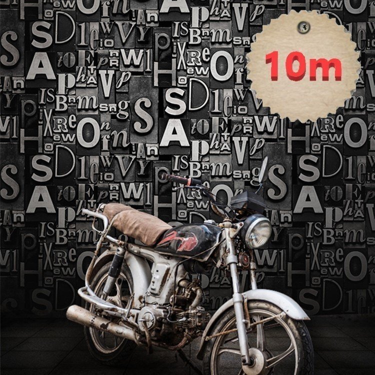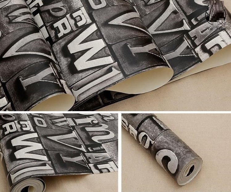 3D ウォールペーパー 【ビンテージロゴ×グレー】 英字 53cm×10m アンティーク DIY のりなし 壁紙 クロス リメイク 欧米