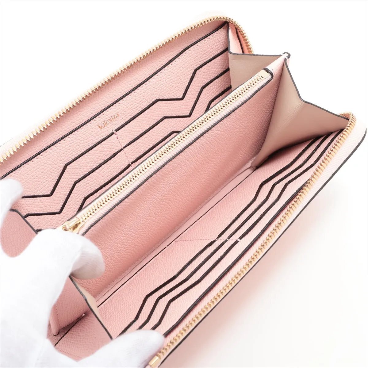 ■極美品■ヴァレクストラ■レザー 長財布 ウォレット ラウンドファスナー ピンク 本革 レディース MMM CU50-1