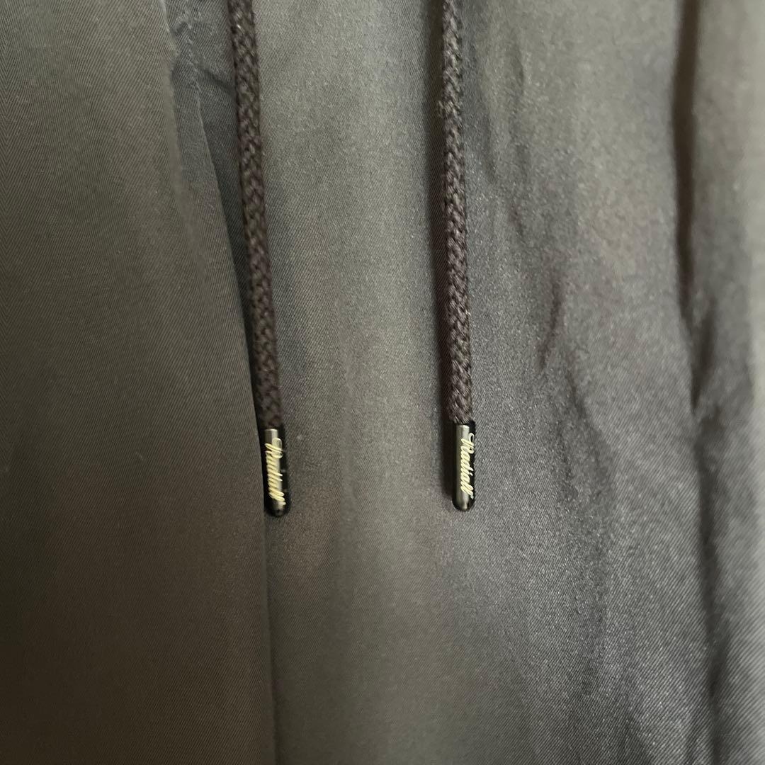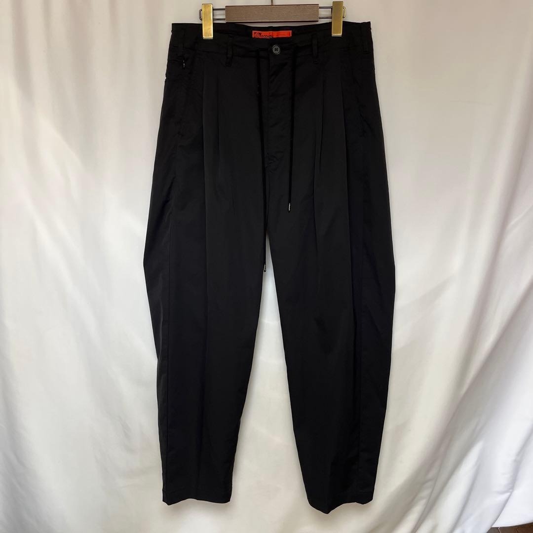 レングスの長さが絶妙なスッキリとした綺麗なシルエット。ウエストは平ゴムとスピンドルでホールド、アジャストできるイージーな仕様です。左身頃にフラッグロゴのラバーワッペンが入るシンプルなデザイン。