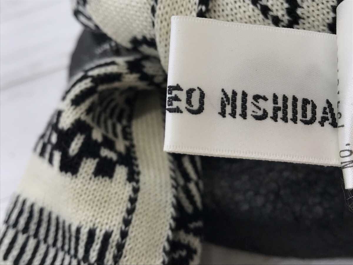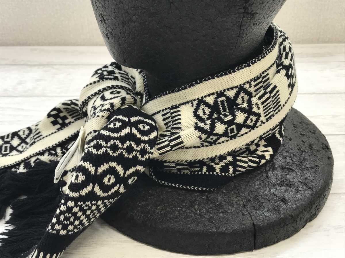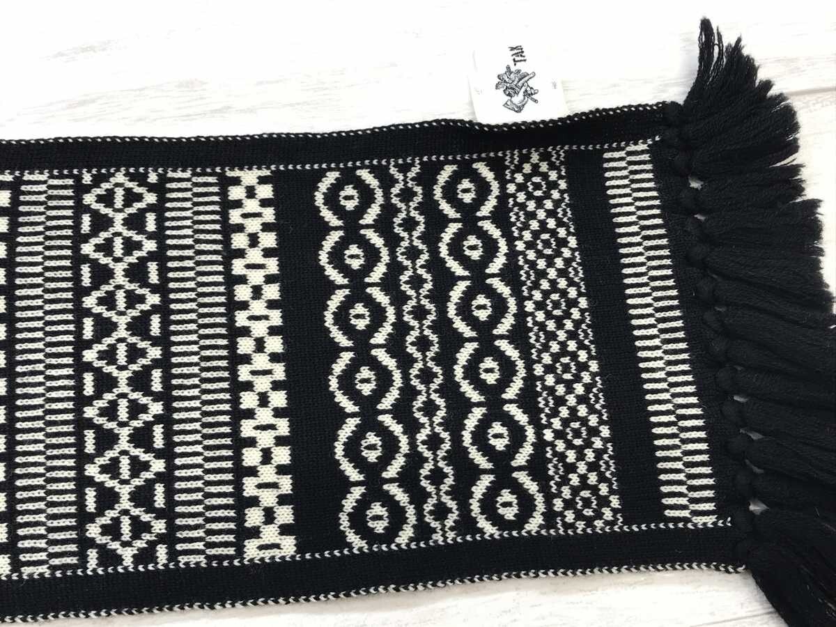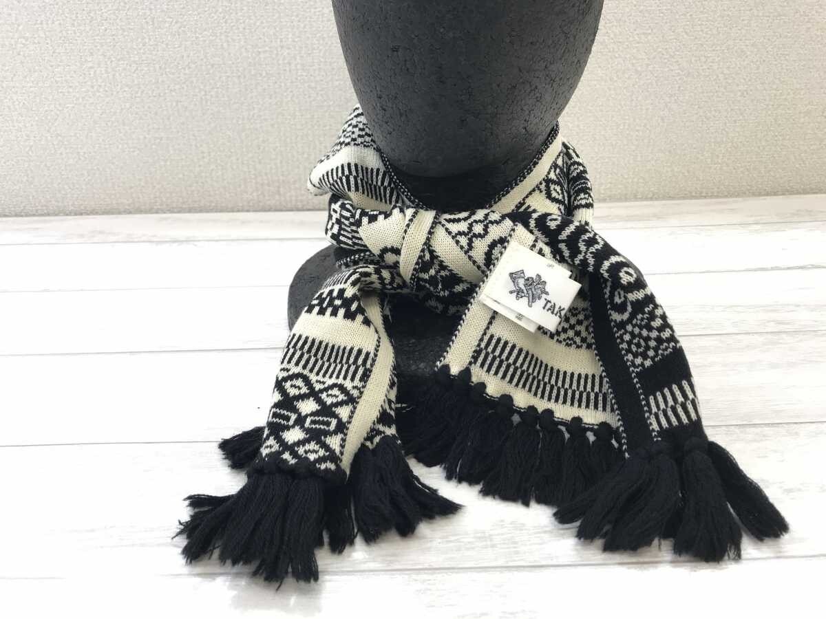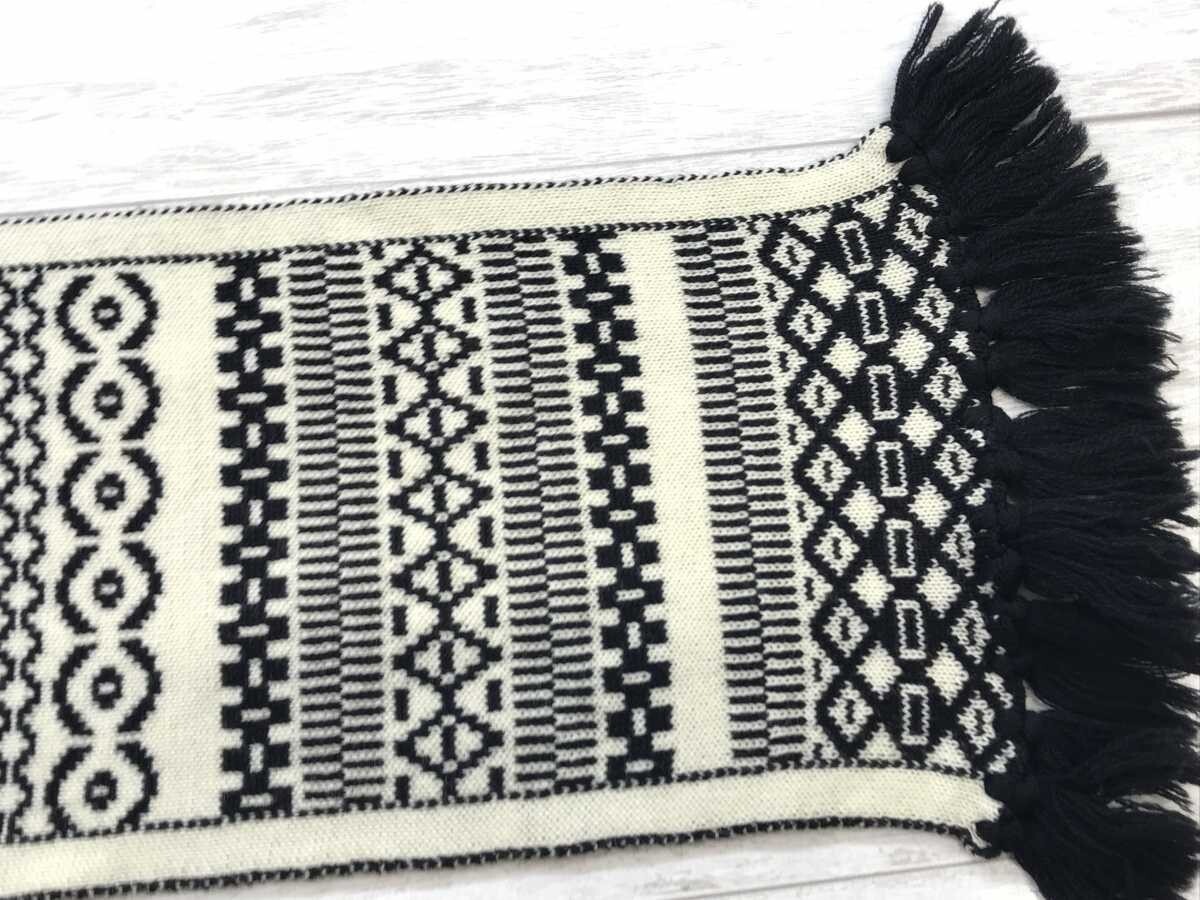 タケオニシダ TAKEONISHIDA エスニック モード 北欧 ノルディック ジャガード ニット フリンジ マフラー 男女兼用 ウール100% 黒白です。