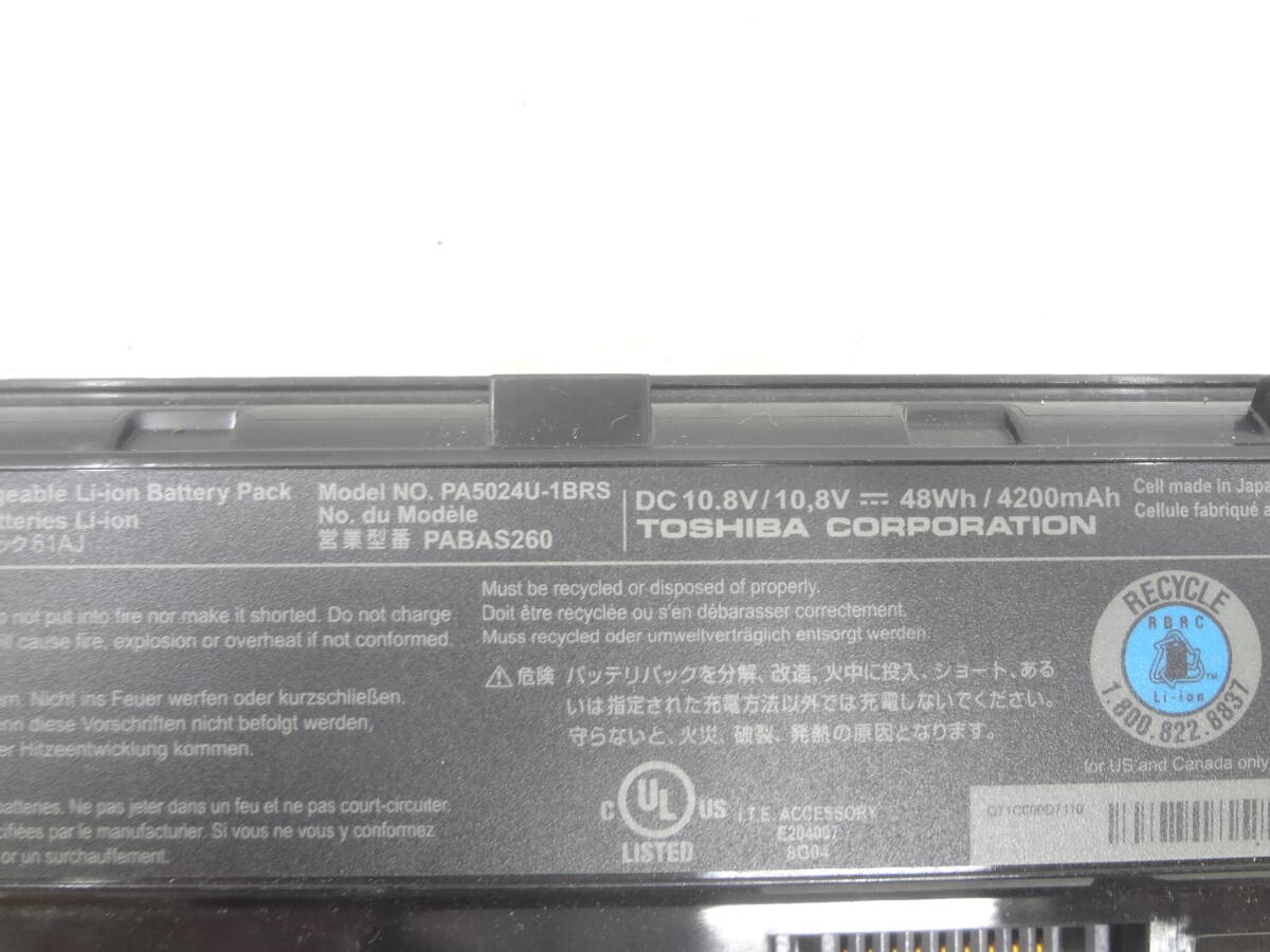 TOSHIBA 純正バッテリー PA5024U-1BRS 10.8V 48Wh dynabook T552/Qosmio T852シリーズなど用 未テストジャンク品