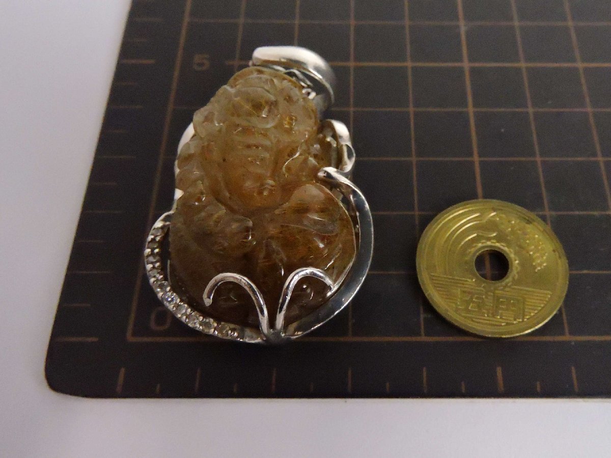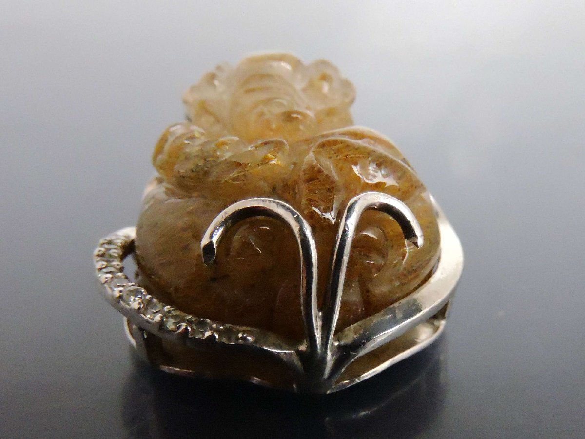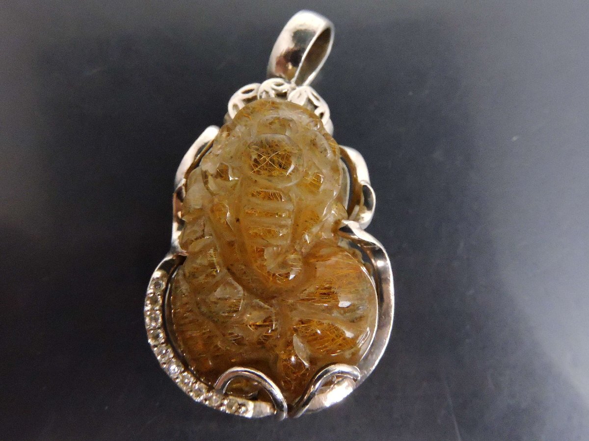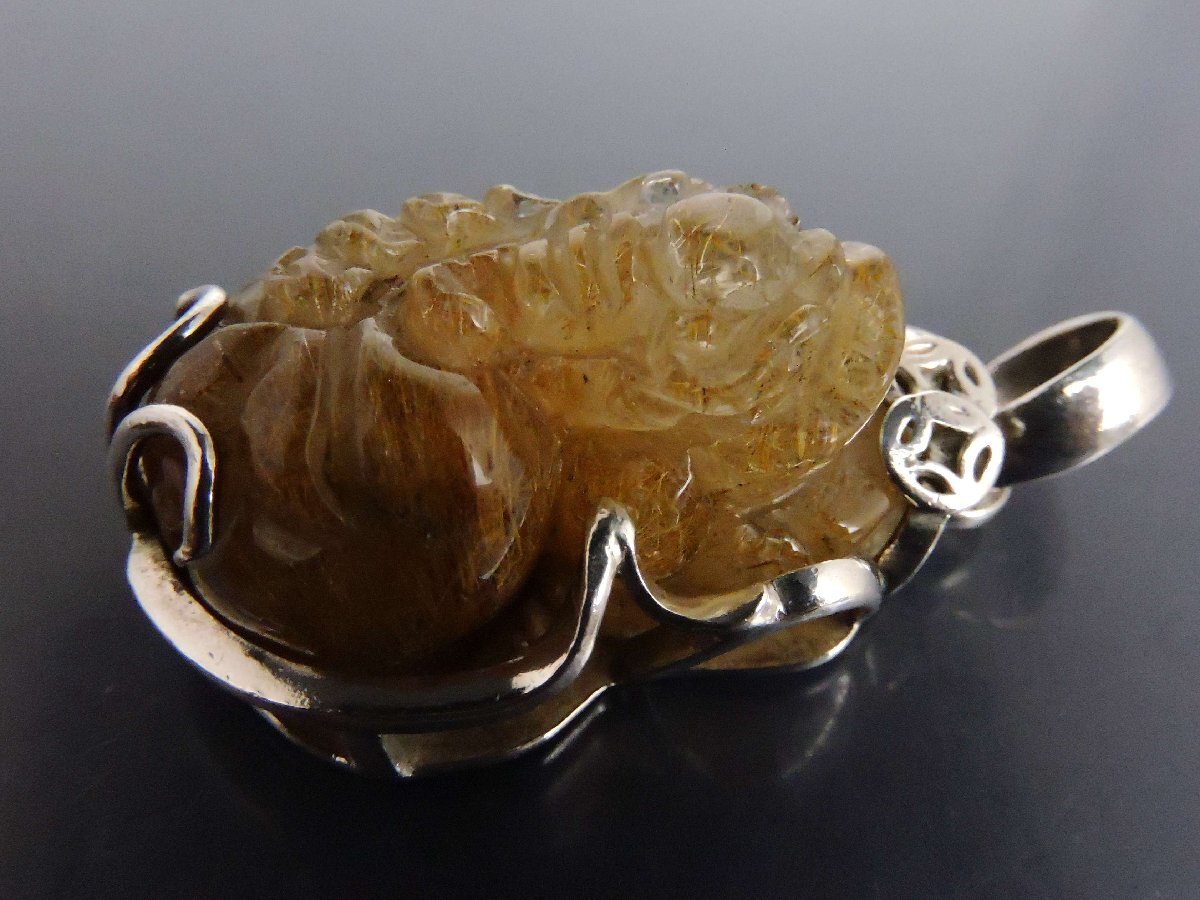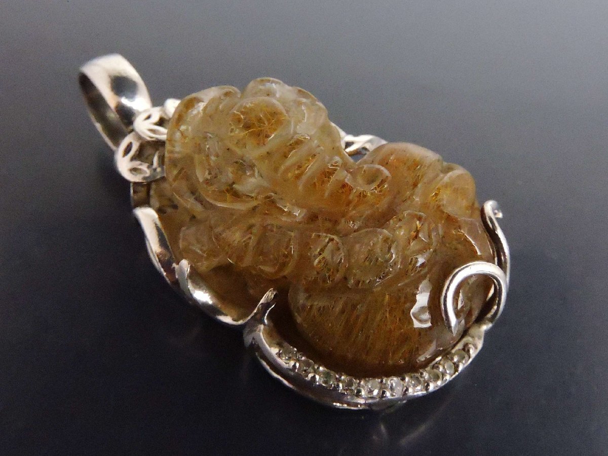 ルチルクォーツ 天然石 ペンダントトップ チャーム 彫刻 スコーピオン風 縦約5.5㎝
