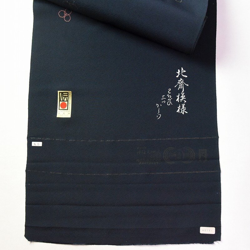 【ほりだし堂】 小紋 京友禅 北斎模様 輪違い三つ柏 紺藍色 反物 正絹 着物 生地 丹後ちりめん 10/14~10/21