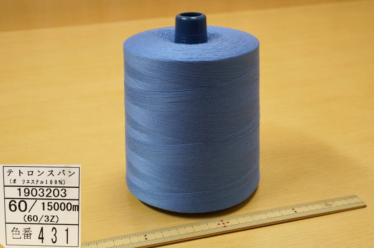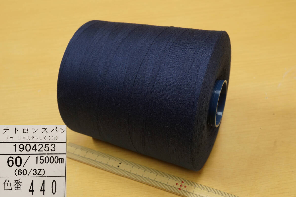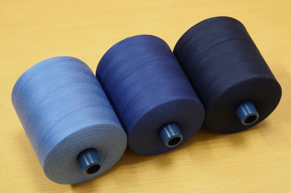 新品未使用 #60 工業用特大巻スパンミシン糸の出品でございます。 新品未使用品、1本:15000m巻仕様、紺系3色3本組でございます。