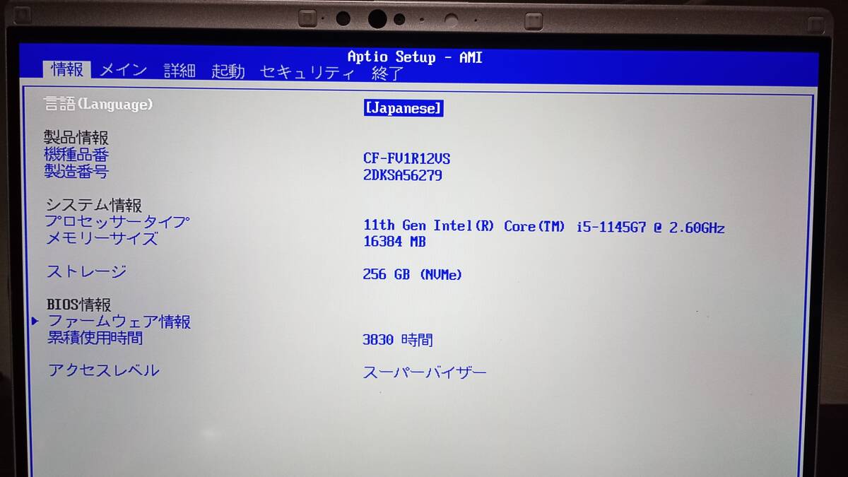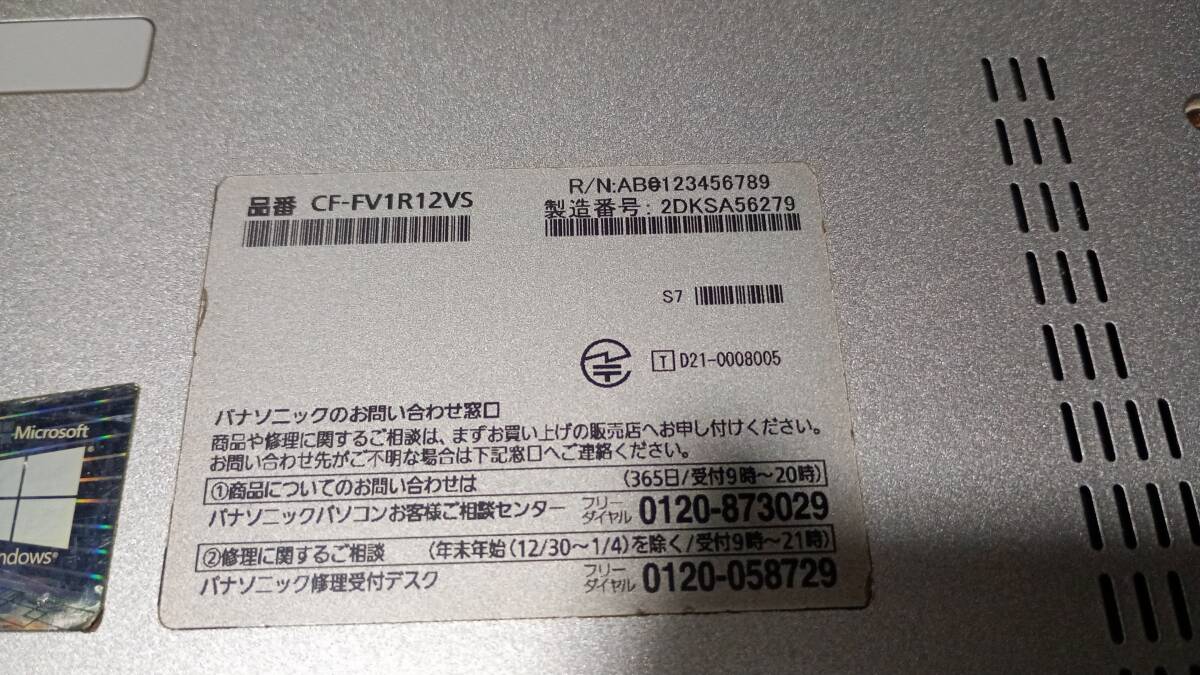 管51007-5 パナソニック CF-FV1R12VS ジャンク かなり不安定 2回に1度BIOS起動OK 起動後もフリーズ バッテリー無しでの起動不可 バッテリー無し 背面の滑り止めゴム無し