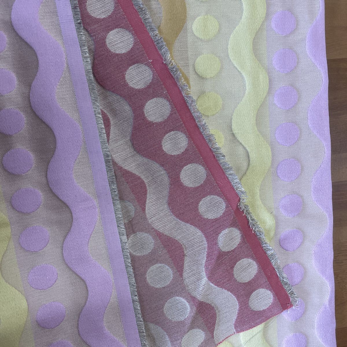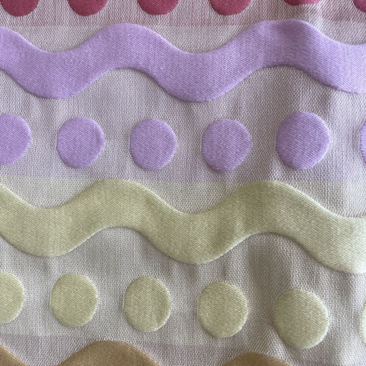 優しいパステルカラーの波模様とドット柄がとても可愛いデザインです。
