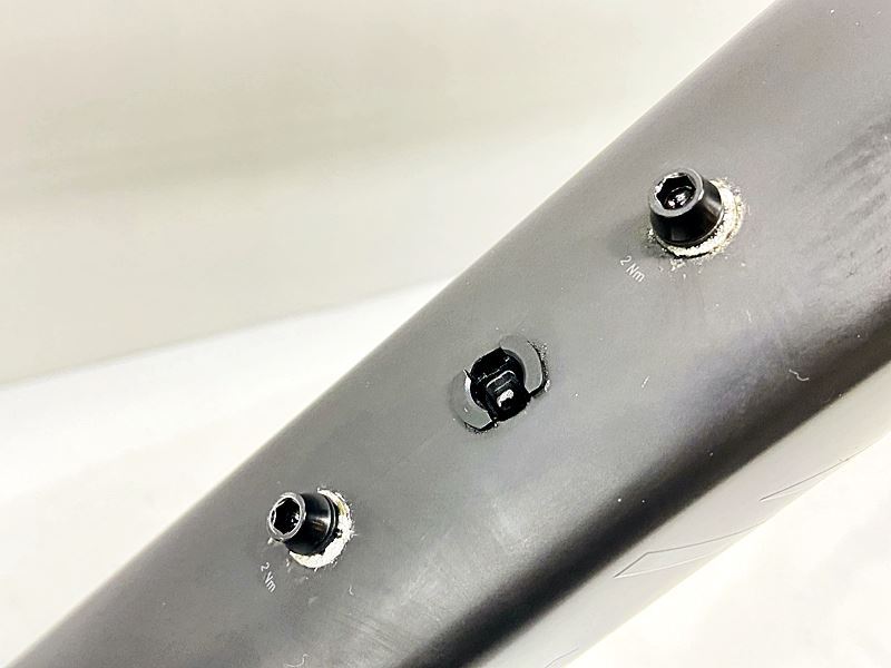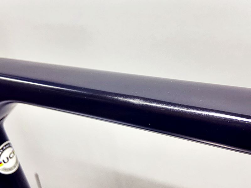 トップチューブの右側に、塗装ハゲ、わずかなへこみがあります。