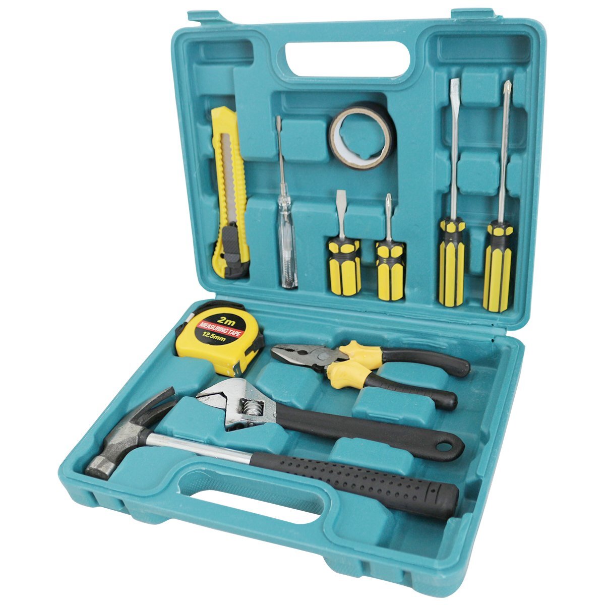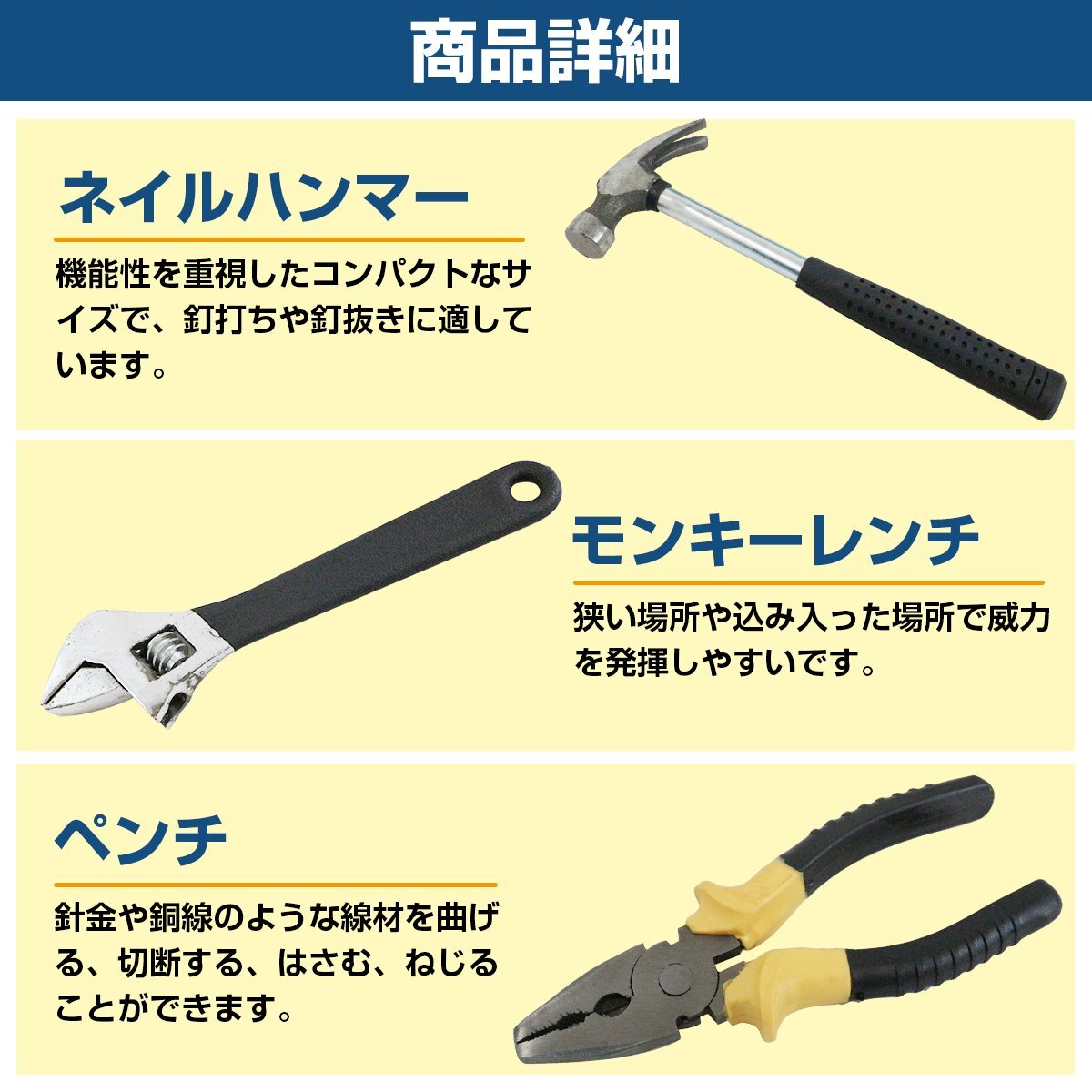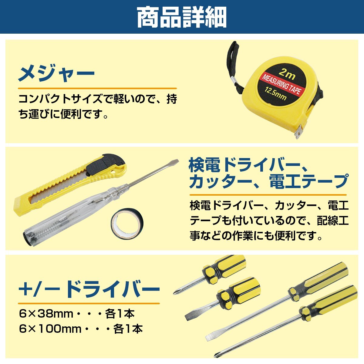 ツールセット 11pcs カッター/ハンマー/ドライバー/メジャー/ペンチ/モンキー/検電器/電工テープ ケース付き 工具 11点セット