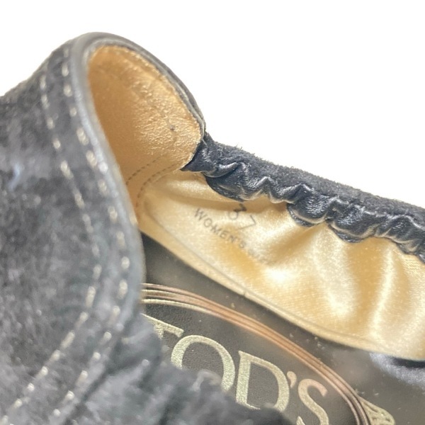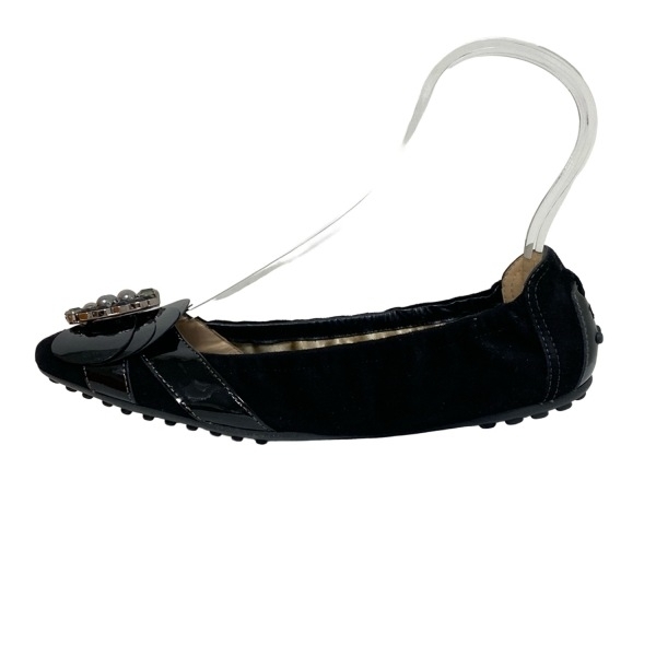 トッズ TOD'S フラットシューズ 37 - レザー 黒×ダークグレー×マルチ レディース パール/ビジュー 靴