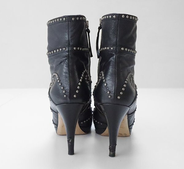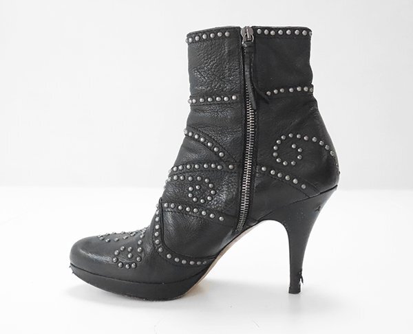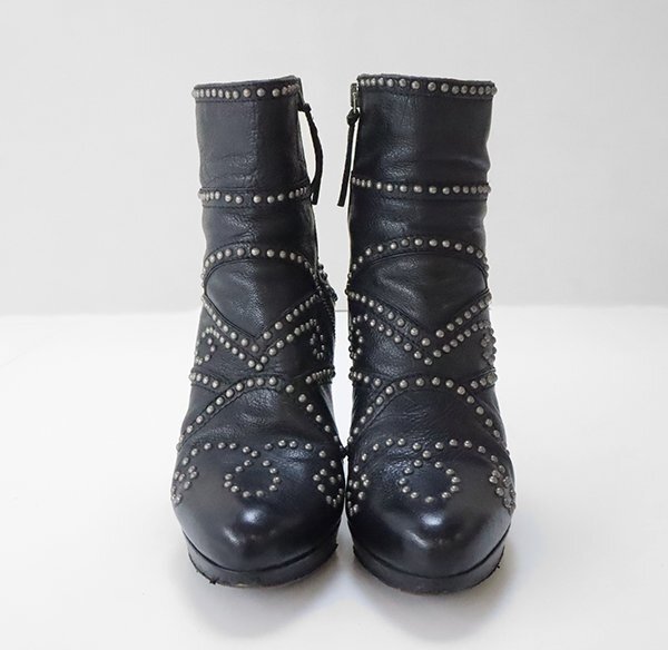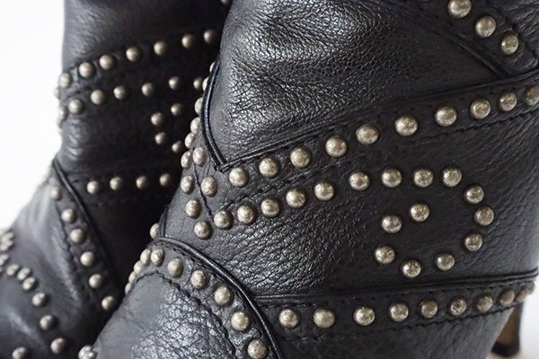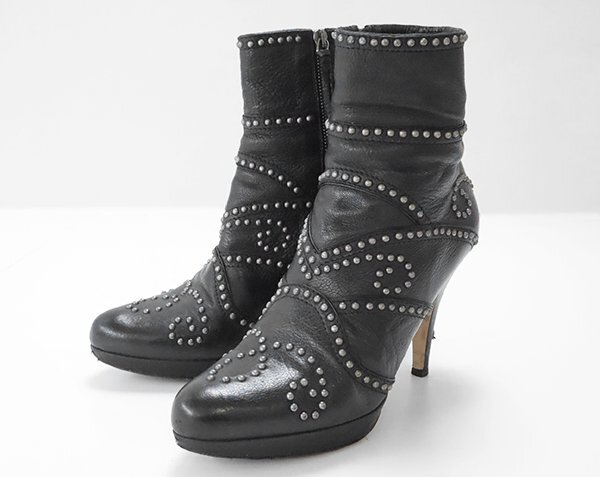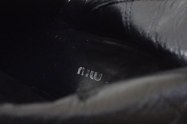 miu miu ◆ スタッズ装飾 ヒール レザー ショート ブーツ 38サイズ (約25cm) 黒 サイドジップ ミュウミュウ ◆G104