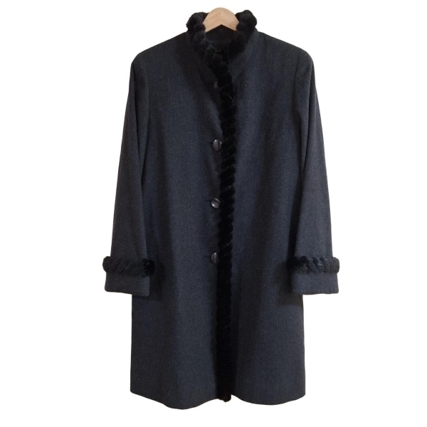 レリアン Leilian サイズ9 M - ダークグレー×黒 レディース 長袖/カシミヤ/ミンク/冬 コート