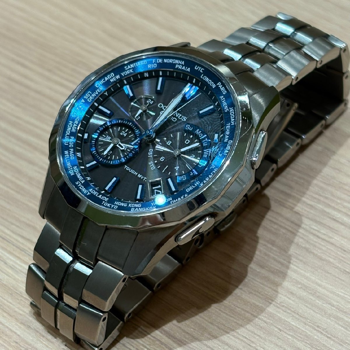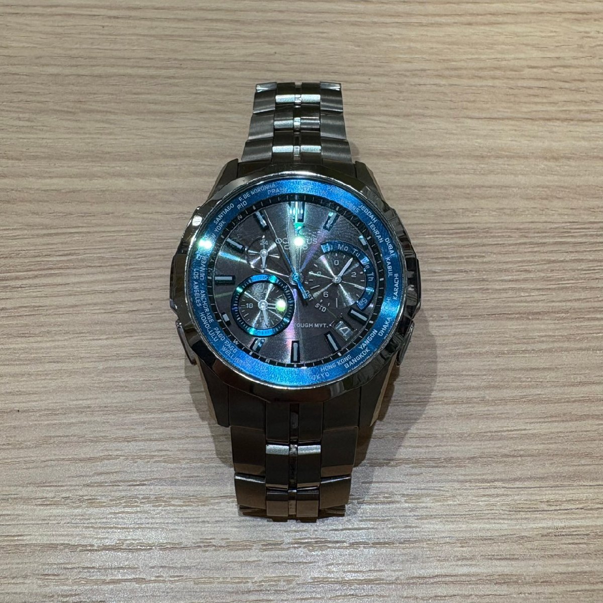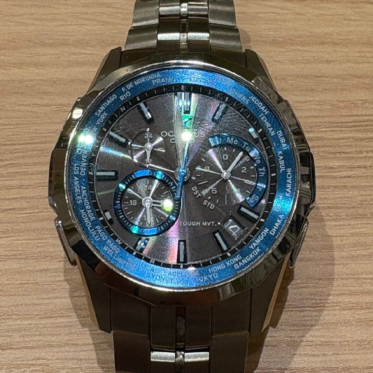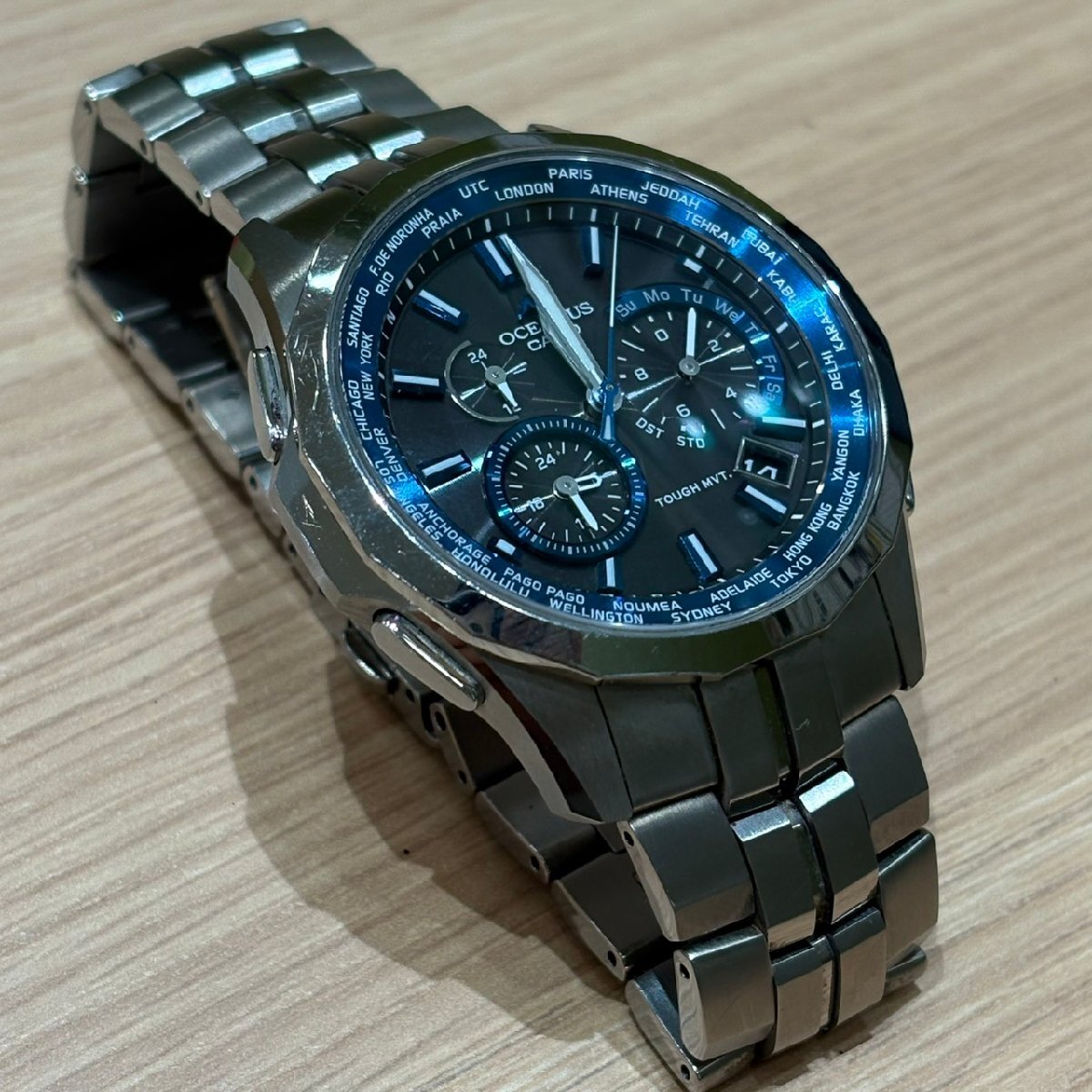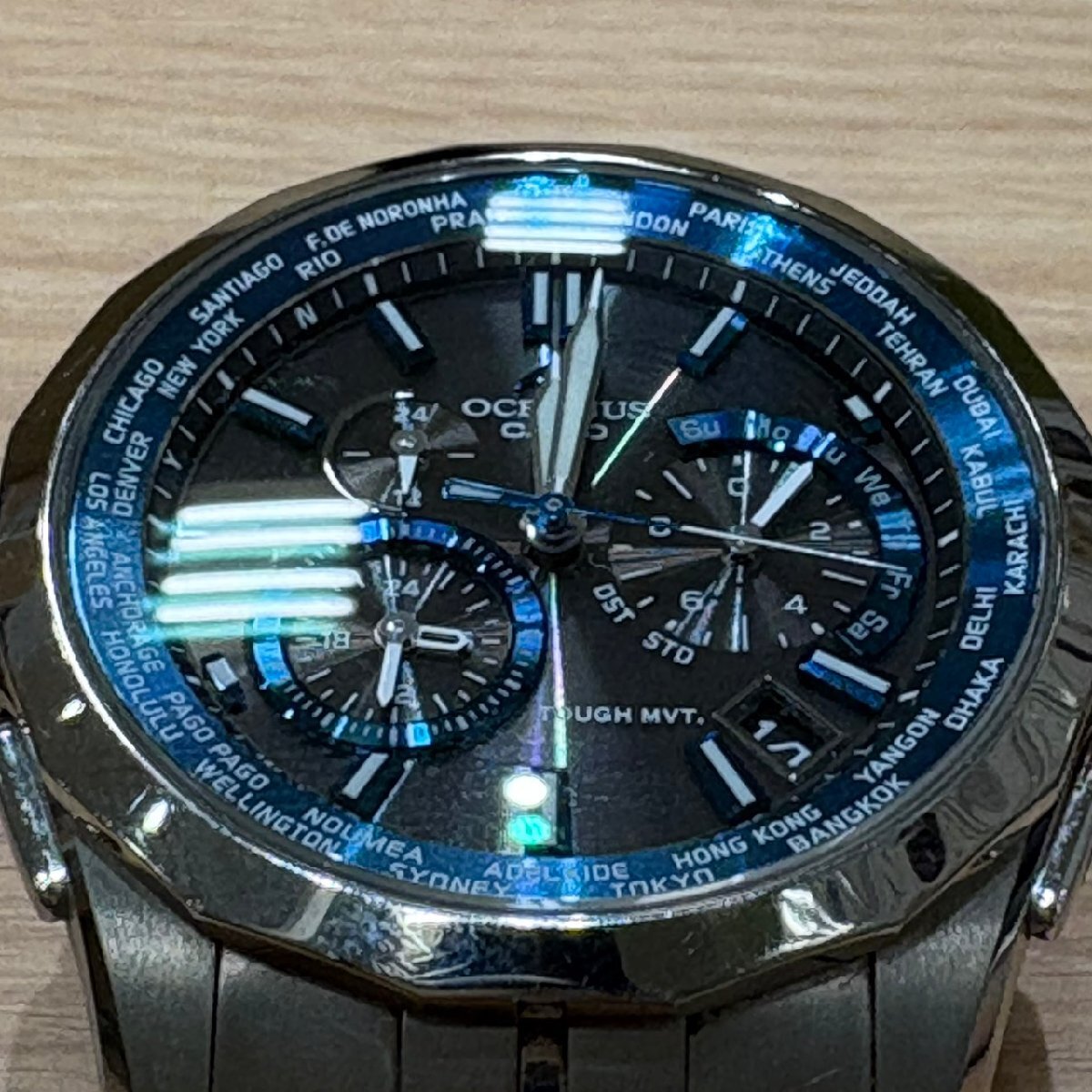 【WSB57773】【稼動品】 CASIO カシオ ソーラー メンズ腕時計 OCEANUS オシアナス 0CW-S1400 黒文字盤 デイト ラウンド シルバーカラー |
