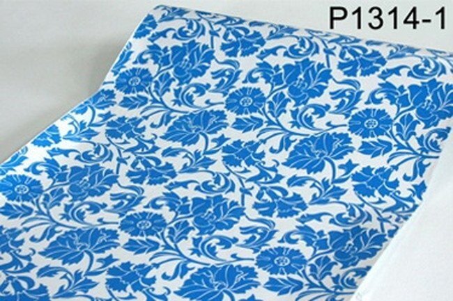【大量100m】p1314-1 ブルー 薔薇 クラシック モダン 壁紙 シール リフォーム 多用途 ウォールステッカー はがせる リメイクシート