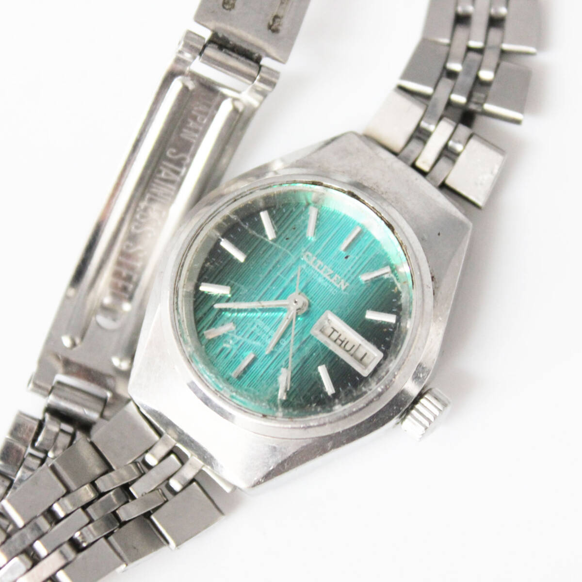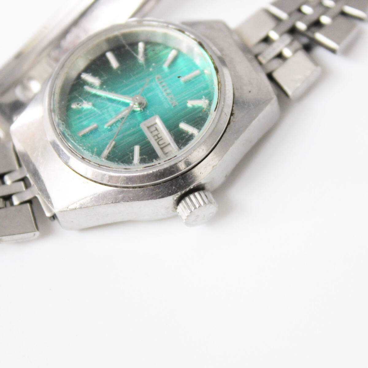 W251014-11 CITIZEN AUTOMATIC シチズン 28800 21石 4-661320 レディース腕時計 自動巻き ジャンク デイデイト 文字盤グリーン