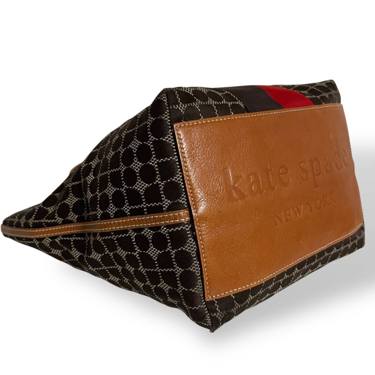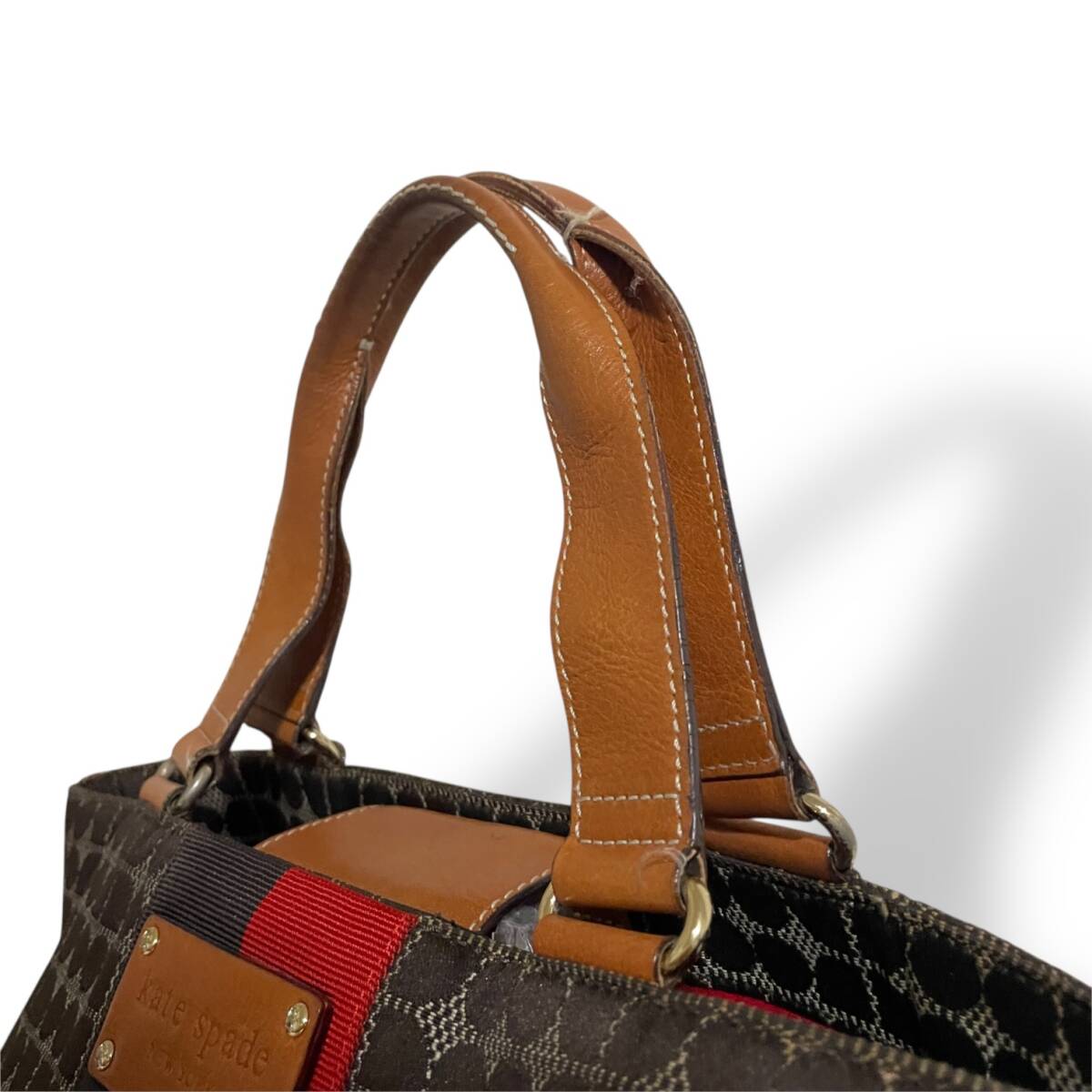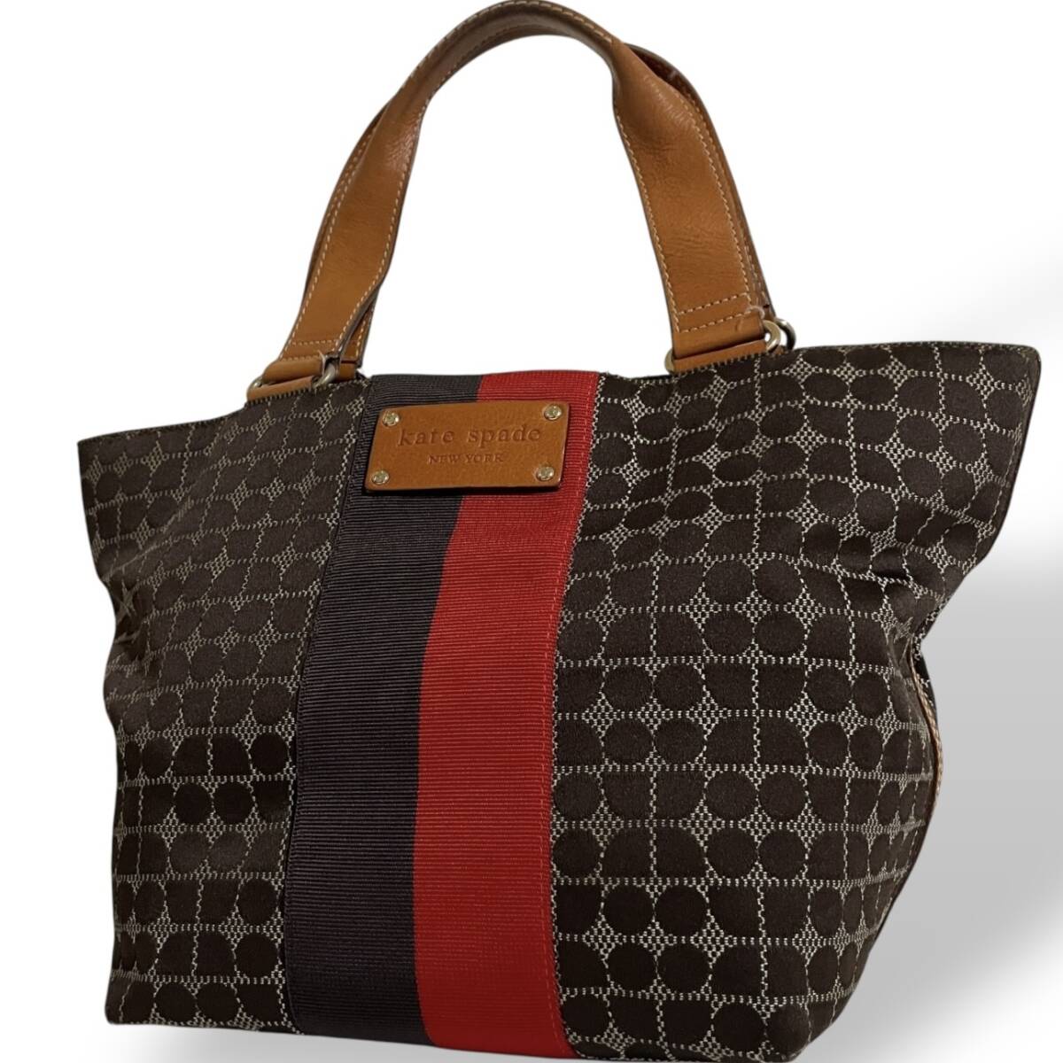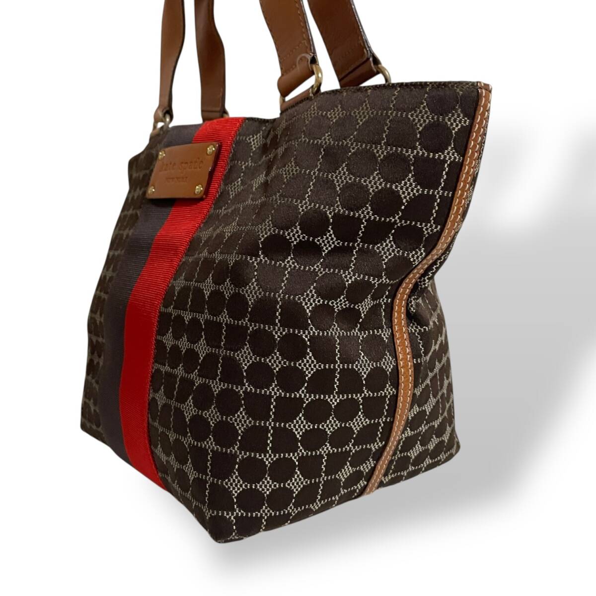 ◇入手困難品◇ kate spade ケイトスペード キャンバス レザー ロゴ ストライプ ハンドバッグ トートバッグ 腕掛け ミニボストンバッグ